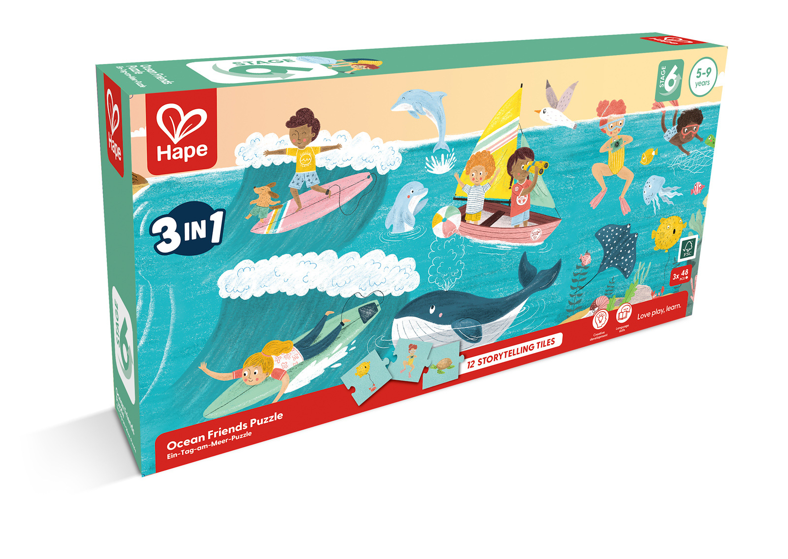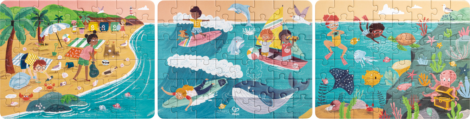 Je něco krásnějšího než slunce, moře a písek? Vybudujte si celý den zábavy a her u moře s tímto puzzle z mnoha balení. Se třemi různými hádankami si můžete vytvořit své vlastní plážové dobrodružství. Kromě toho jsou zahrnuty různé příběhové dlaždice pro kreativní vyprávění příběhů nebo hádání. Skládačky jsou skvělé pro podporu koordinace ruka-oko, jemné motoriky a rozvíjení strategií řešení problémů. Ideální pro podporu týmové práce a samostatné hry, která dětem pomáhá rozvíjet sociální a jazykové dovednosti. Skládačky jsou skvělé pro povzbuzení rozpoznávání barev a kreativitu. Balení: 18,2x6,2x36,2cm. Věk: 5+