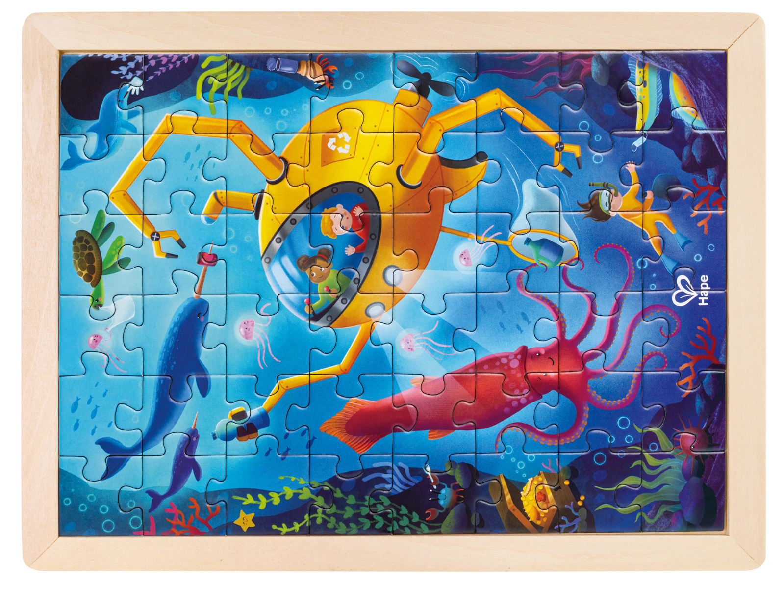 Ponořte se hluboko do neprobádaných vod s touto 48dílnou skládačkou. Podvodní scéna obsahuje hlubinnou úklidovou četu v robotické ponorce, narvala, obří chobotnici a spoustu malých olihní. Na zadní straně je nenabarvená šablona, kterou si můžete vytvořit vlastní puzzle. Balení: 26,2x1,4x29,7cm. Věk: 4+