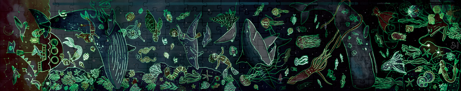 Vklouzněte pod vlny oceánu a navštivte své oblíbené mořské tvory s tímto nádherným podlahovým puzzle. S 200 kusy, které svítí, když jsou světla zhasnutá! Obsahuje 10 karet se zábavnými fakty o mořských tvorech! Balení: 18x6x48cm. Věk: 6+