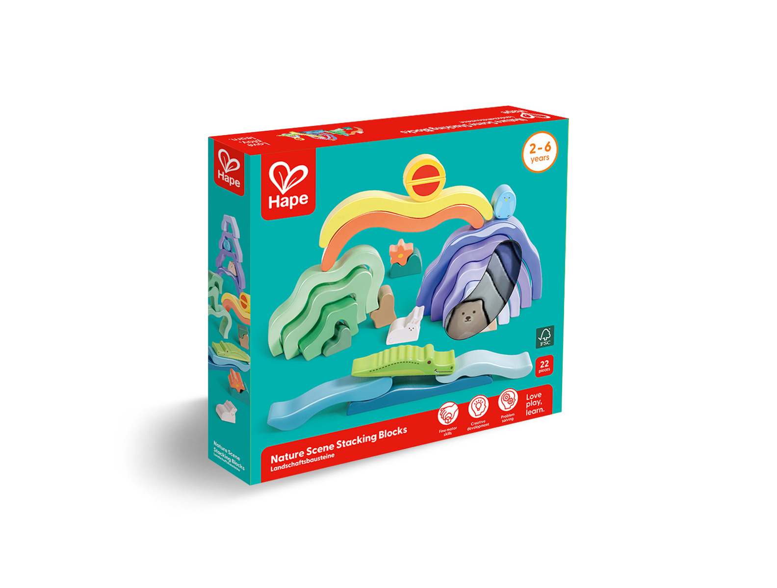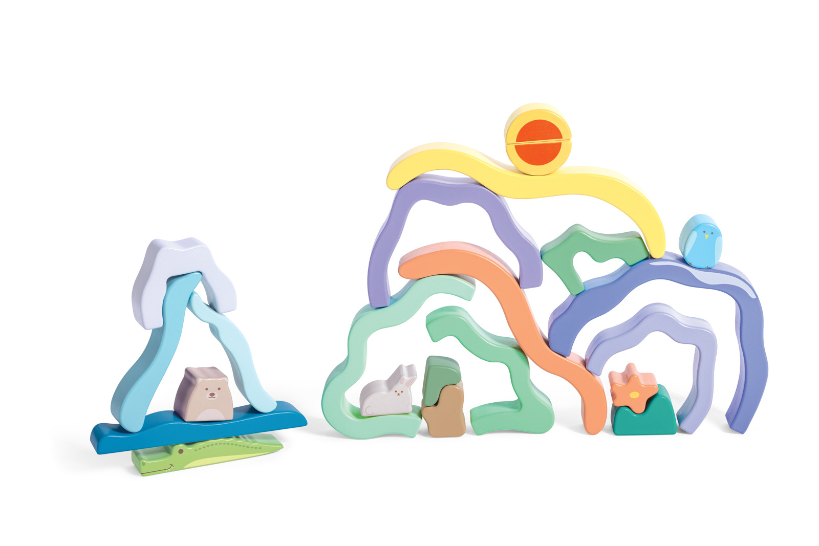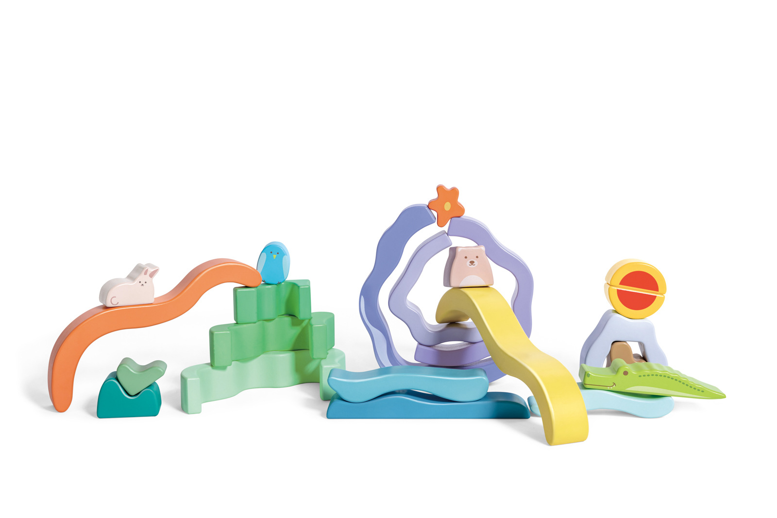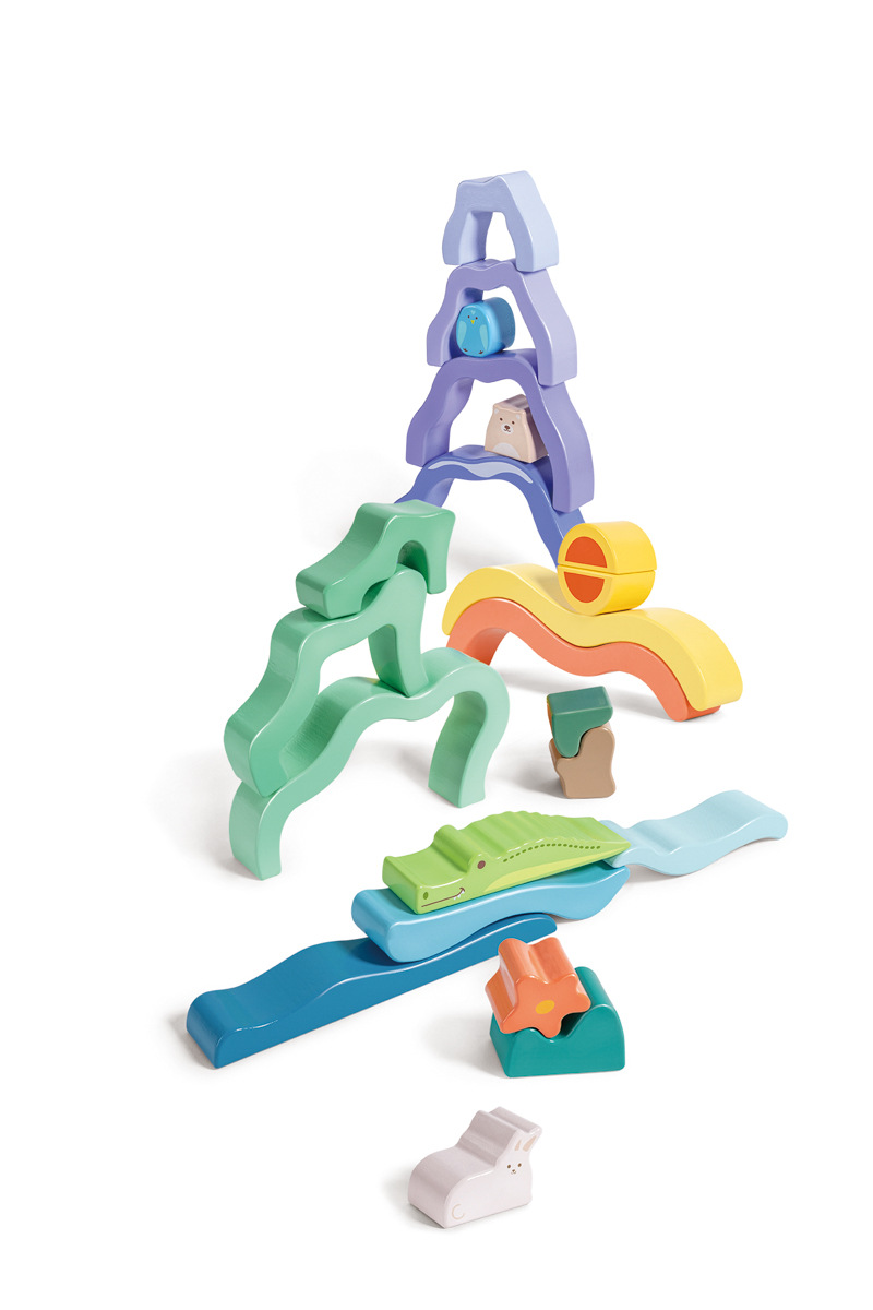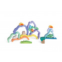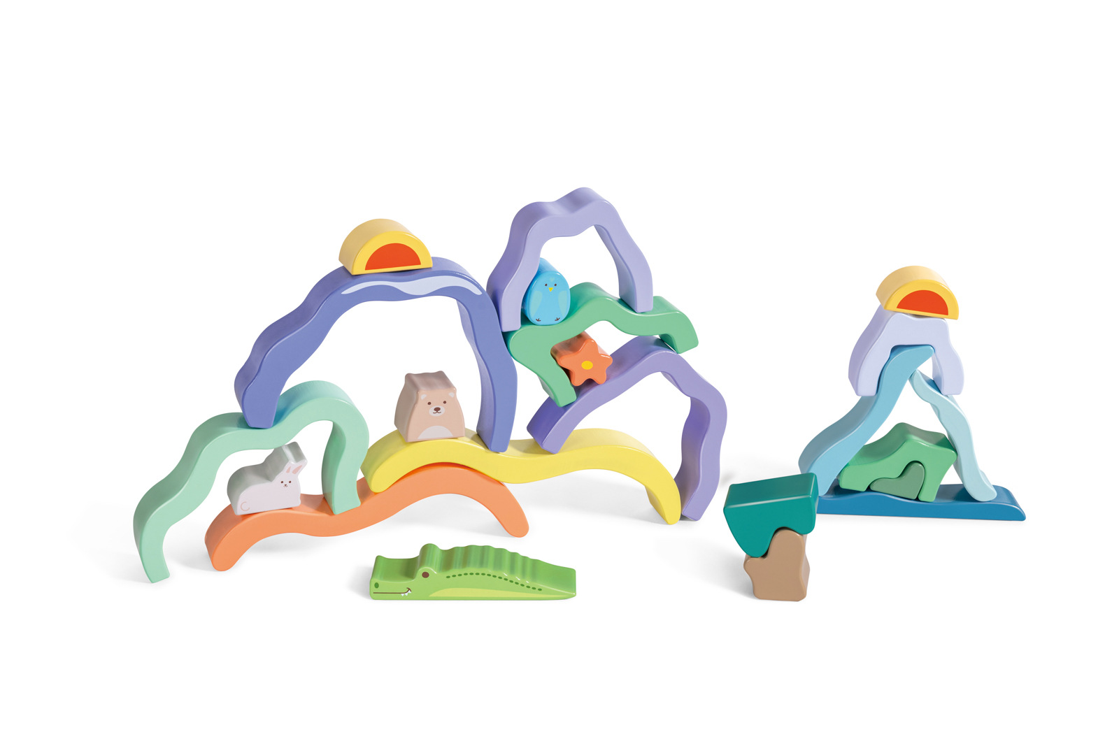 Barevná sada nepravidelných bloků s tématikou přírody a zvířat. Děti mohou skládat, třídit nebo vkládat díly různými způsoby. Zatímco některé možnosti skládání se zaměřují na rozpoznávání barev, jiné pomáhají budovat jejich smysl pro rovnováhu a koordinaci. Tato sada bloků obsahuje 22 barevných dílků, které zahrnují malebné stromy a hory a dokonce i zvířecí postavy, jako je medvěd, zajíček a krokodýl. Rozměr balení: 26x4x24 cm. Věk 2+