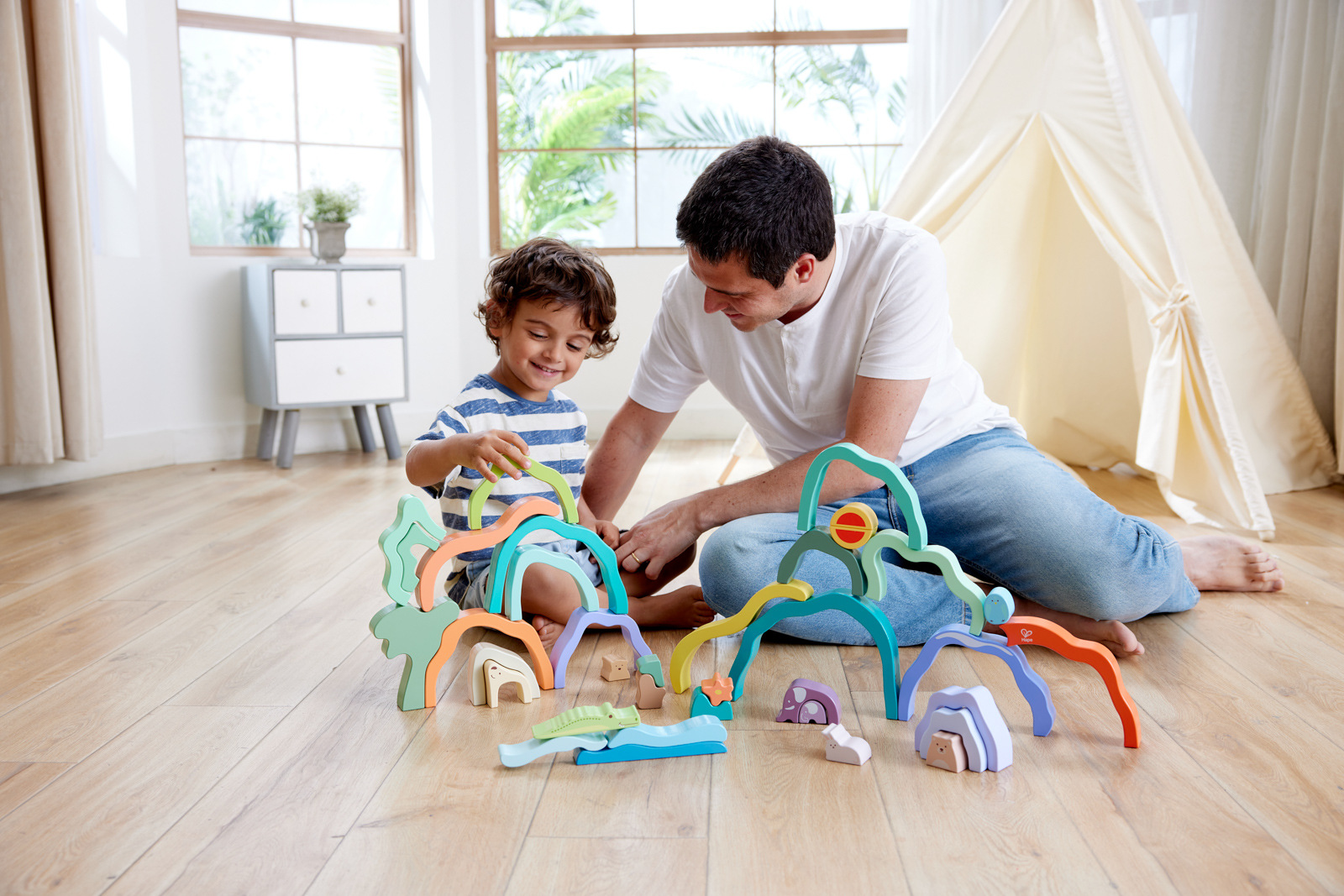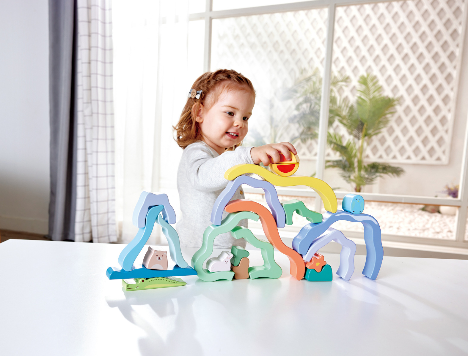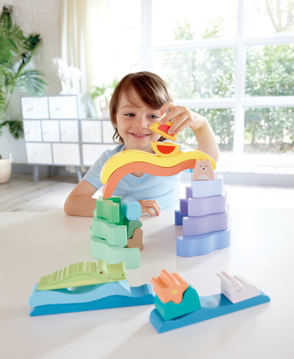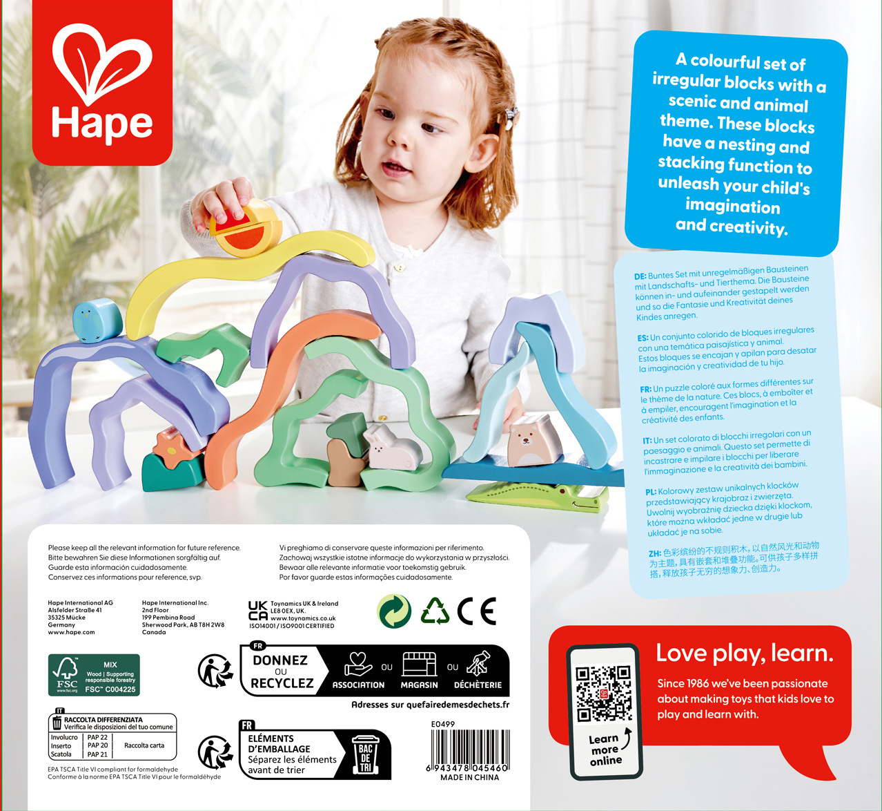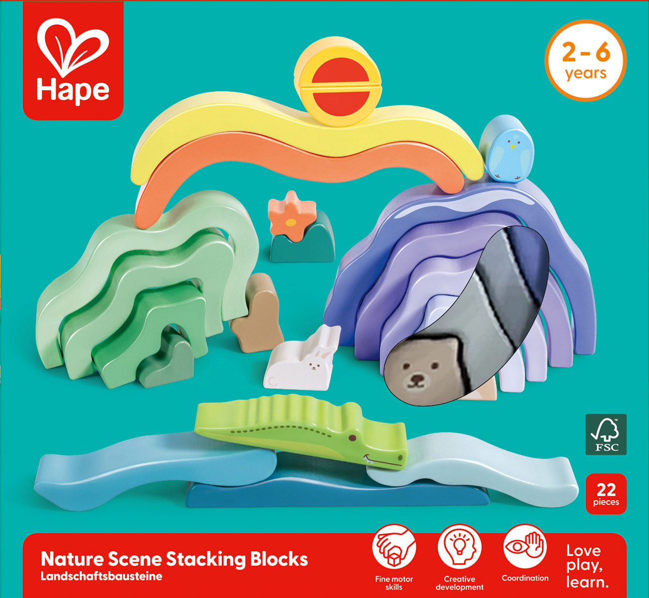 Barevná sada nepravidelných bloků s tématikou přírody a zvířat. Děti mohou skládat, třídit nebo vkládat díly různými způsoby. Zatímco některé možnosti skládání se zaměřují na rozpoznávání barev, jiné pomáhají budovat jejich smysl pro rovnováhu a koordinaci. Tato sada bloků obsahuje 22 barevných dílků, které zahrnují malebné stromy a hory a dokonce i zvířecí postavy, jako je medvěd, zajíček a krokodýl. Rozměr balení: 26x4x24 cm. Věk 2+