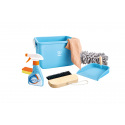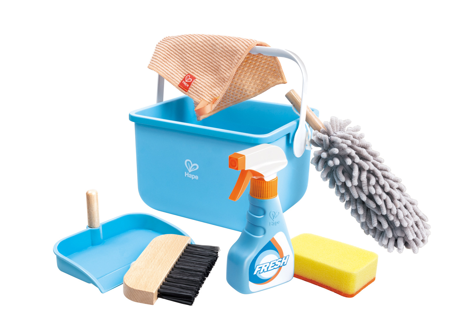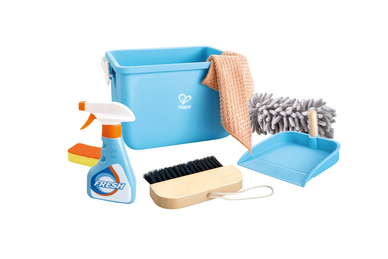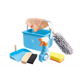 S touto skvělou sadou je úklid velká zábava! S kbelíkem, lahvičkou s čisticím sprejem, lopatkou a zametacím kartáčem je vše, co ti nejmenší potřebují jako pracovité pomocníky při úklidu. Úklidová sada obsahuje kbelík, rozprašovač, čistící hadřík, lopatku, kartáč, houbičku a prachovku. Ideální vzdělávací hračka, která podporuje rozvoj jemné motoriky a zlepšuje jazykové a sociální dovednosti. Sada podporuje imitaci hry v dětech a motivuje je k tomu, aby svůj pokoj udržovaly uklizený a čistý. Všechny díly sady jsou plně funkční a rozprašovač lze naplnit vodou pro čištění povrchů. Veškeré příslušenství najdete v kbelíku a lze jej prakticky uložit až do dalšího úklidu. Balení: 21,5x15x23cm. Věk: 3+