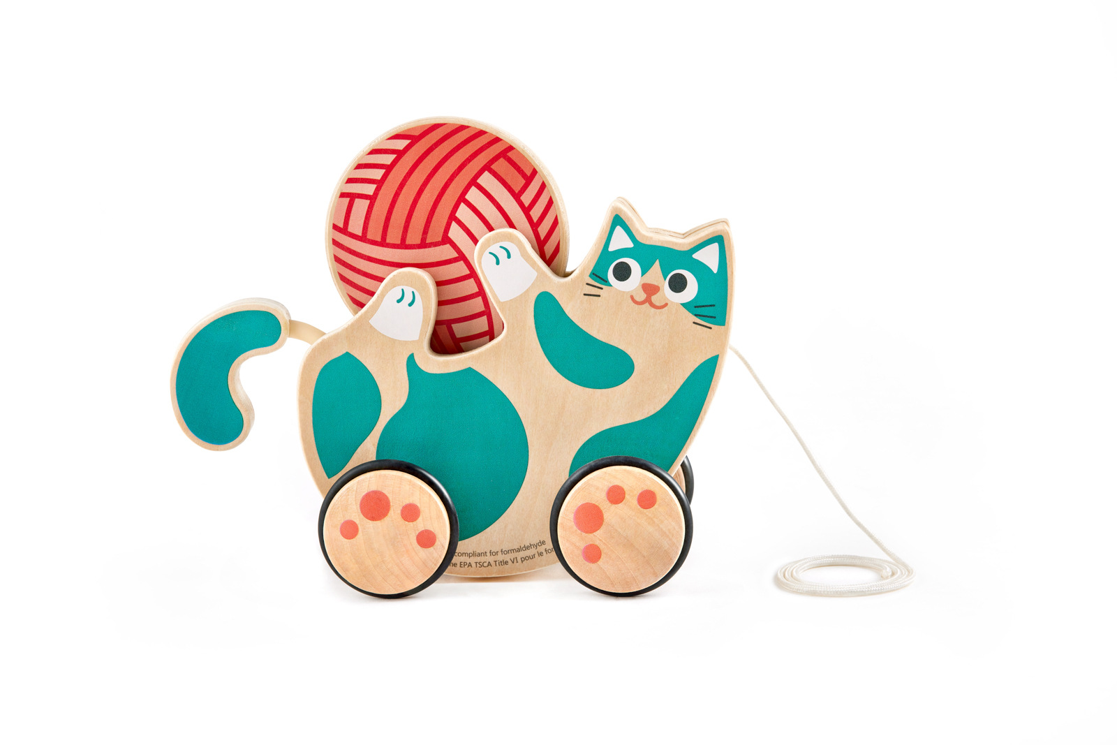Toto nádherné kotě si nikdy nechce přestat hrát se svým klubkem vlny! Přetáhněte je po podlaze na provázku, abyste viděli, jak vrtí ocasem a otáčejí vlněné chrastítko ve svých tlapkách! Chrastítko se pomalu otáčí a ocásek kotěte se houpe, když je taháte za sebou. A vlněný chrastící míček lze vyjmout a hrát si s ním samostatně. Pečlivě navržená pogumovaná zadní kolečka ochrání vaše podlahy, zatímco se vaše děťátko bude válet po celém domě. Perfektní pro povzbuzení dětí k prolézání a skvělý společník, když začnou chodit nebo běhat po domě. Balení: 11x18x23cm. Věk: 12m+