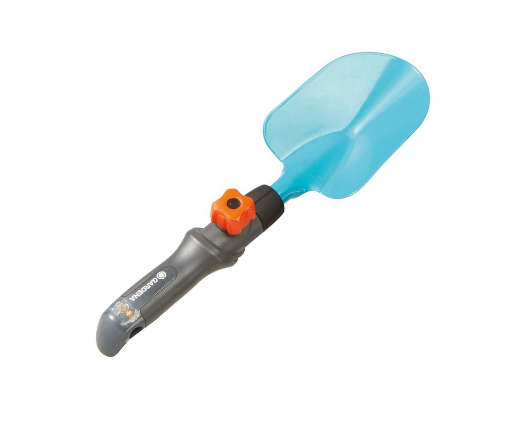 Malá zahradní lopatka GARDENA je ideální pro malé zahradníky. Lopatka je nastavitelná až na 17 cm. Rukojeť je dlouhá 11 cm a vyrobena z plastu. Nástavce se dají vyměnit. Vhodné od 3 let.