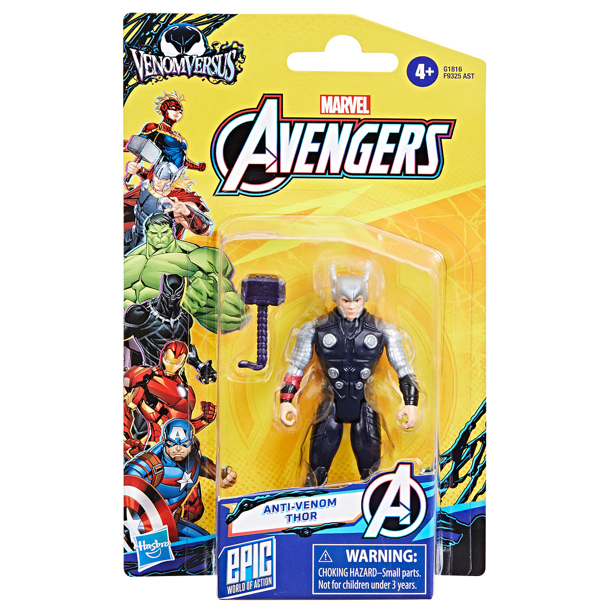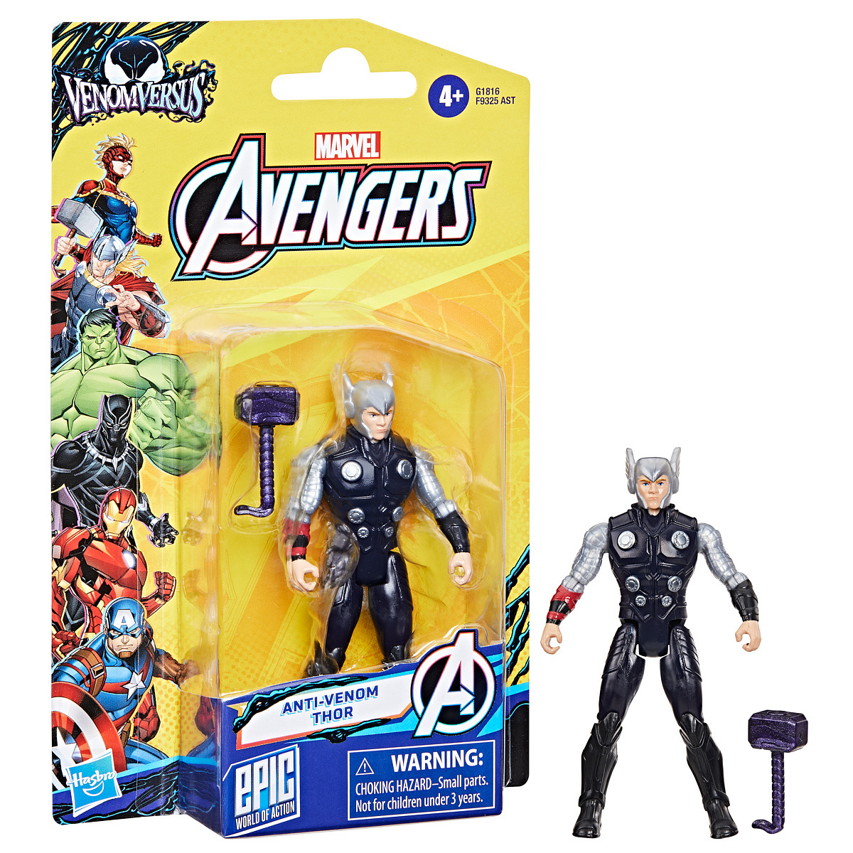 Děti si s těmito hračkami Avengers dokážou představit své oblíbené marvelovské superhrdiny, jak se vrhají do dobrodružství. Superhrdinové Marvelu využívají síly symbiontů k boji proti zlému mimozemšťanu Venomovi a jeho hordě Venomizovaných padouchů. Tato sběratelská akční figurka Thor – Marvel Anti-Venom, je součástí exkluzivní série Hasbro Epic World of Action a vyznačuje se klasickým designem a dekoracemi, stejně jako polohovatelnými končetinami. Součástí je také Venomized kladivo pro dobrodružství poháněná symbioty. Tato 10 cm vysoká figurka s prvotřídním detailním designem a 9 kloubovými body bude perfektním dárkem pro děti nebo doplňkem jakékoli sbírky figurek superhrdinů. Vyrobeno z kvalitního plastu. Obsah balení: Figurka a doplněk. Baleno v blistru. Rozměry balení: 20,3 x 12,7 x 3,2 cm. Věk: 4+