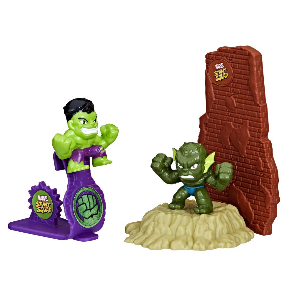 Mocní hrdinové, mega přístup! Marvel Stunt Squad - herní sada akčních figurek, kterou si děti zamilují. S oblíbenými postavami Marvel v klasickém herním schématu hrdina versus padouch jsou tyto malé figurky superhrdinů plné dynamických pozic a akční zábavy! Herní sady Marvel Stunt Squad Hero vs. Villain obsahují dvě figurky v měřítku 2,5 cm, odpalovací zařízení a cílovou základnu.