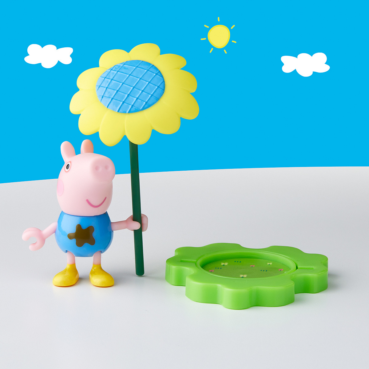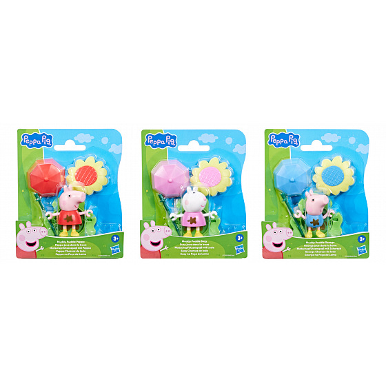 Prasátko Peppa zábava v louži – figurka s doplňky. Děti si mohou přehrávat scény ze seriálu nebo vymýšlet nová vlastní dobrodružství s figurkou Peppa pig zábava v louži. Tato sada je úžasnou hračkou pro děti, které milují tento seriál. Kolekce 3 druhů – Peppa, George a Suzy. Assort je náhodný mix modelů. Výběr nelze ovlivnit. Každé balení obsahuje figurku, stojánek, slunečník a deštník. Rozměry balení: 15,1 x 12,7 x 3,8 cm. Věk: 3+