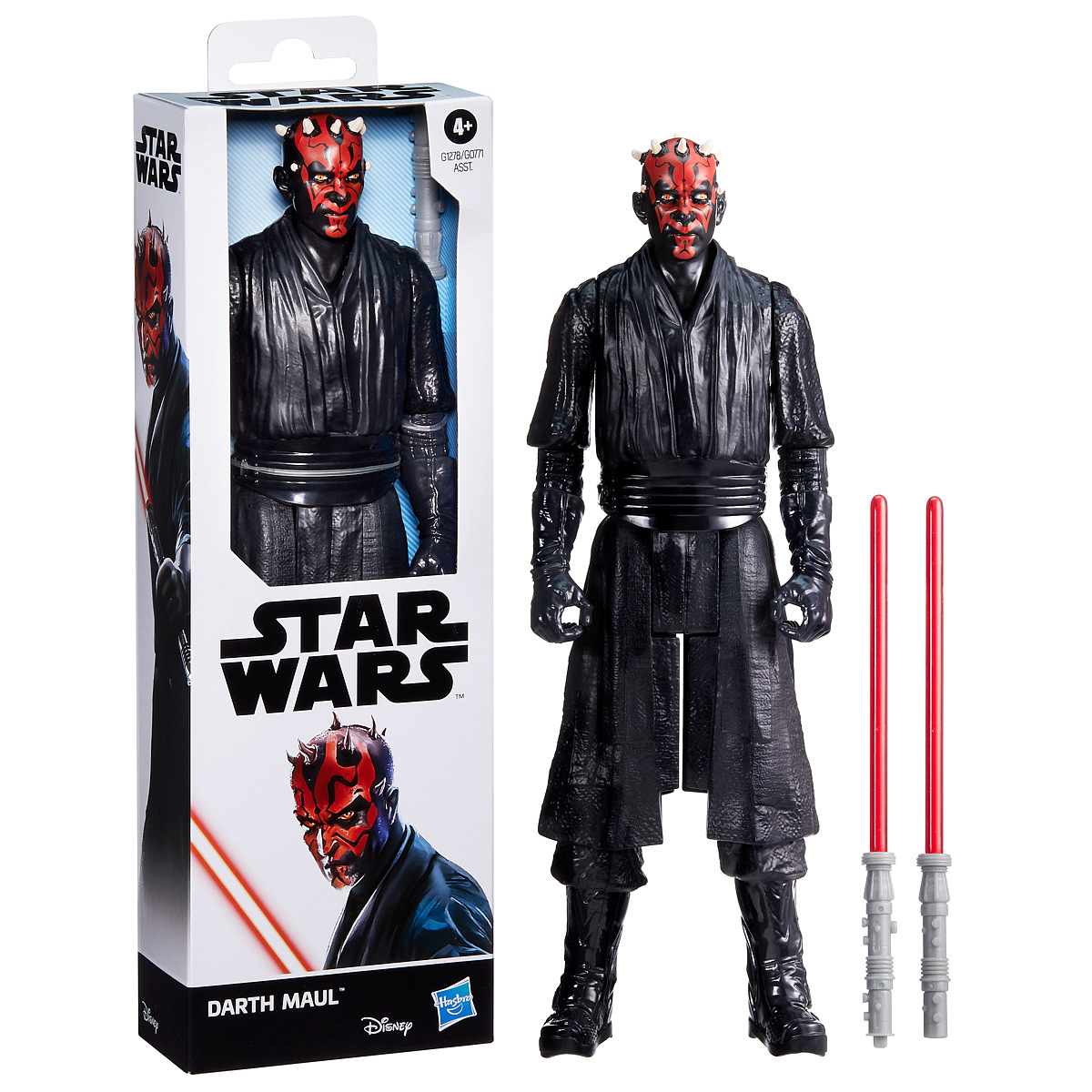 S akční figurkou Darth Maul ze série Star Wars Titan Hero Series si děti mohou představovat velká dobrodružství jako z jiného světa Darth Maul vládne hrozivým světelným mečem s dvojitou čepelí Lightsaber™ a vyznává temnou stranu síly. Figurka Darth Maul se vyznačuje designem inspirovaným postavou a pečlivými detaily. K této akční figurce Star Wars se dodává také červeným dvojitým mečem Lightsaber™, který se snadno vejde do rukou hračky Darth Maula. Figurka má pět ohebných bodů – ruce, nohy a krk, navíc stojí samostatně, takže děti mohou vytvářet úžasné akční pózy. Figurky Star Wars jsou skvělým dárkem pro děti a představují ideální způsob, jak založit sbírku malých fanoušků. Vyrobeno z kvalitního plastu. Baleno v krabičce. Výška figurky: 30 cm. Rozměry balení: 30,5 x 10,2 x 5,1 cm. Věk: 4+