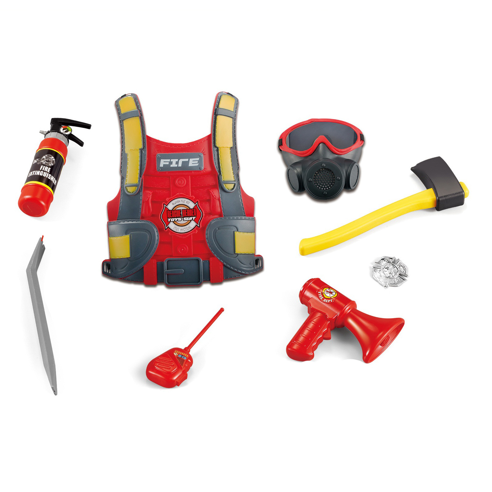 Praktická sada pro všechny malé hasiče! Tento senzační set obsahuje helmu s odznakem a reflexními symboly, hasičskou sekeru, hasicí přístroj, vysílačku a kompas. Vše je vyrobeno z PVC. Do hasicího přístroje lze napustit vodu a stříkat. Zažij skutečnou záchrannou akci a využij k tomu svých nových prostředků z této perfektní sady!