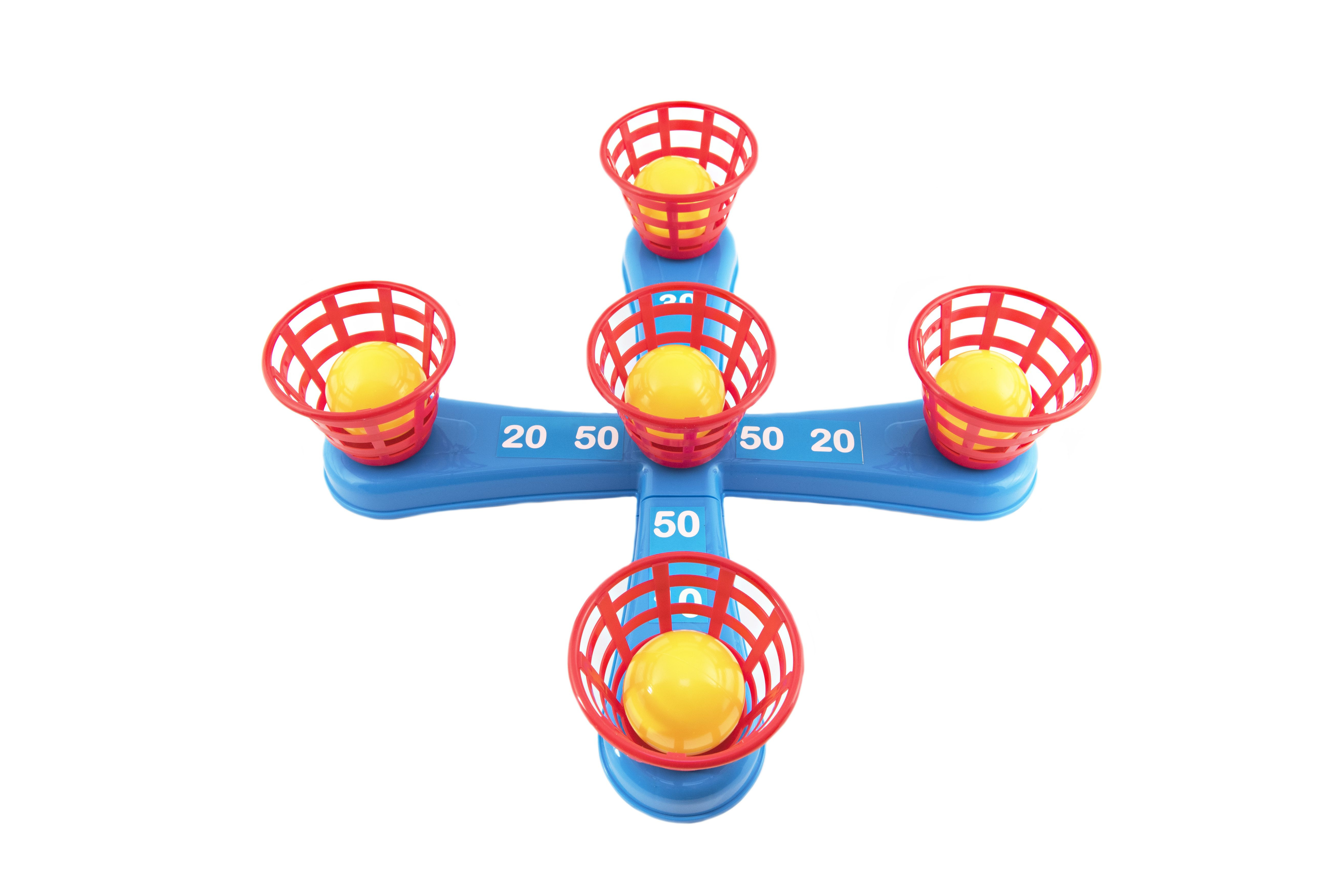 Teddies Házecí hra plast kříž s kruhy + košíčky s míčky v síťce