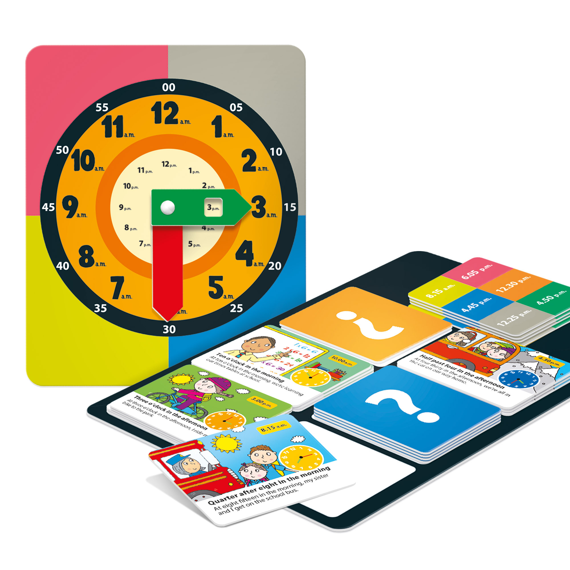 4 hodiny odpoledne nebo 16:00 h? Je čas na hru! Děti si užijí zábavu s touto hrou bingo zaměřenou na čas. Sledují, co jednotlivé postavy dělají v kteroukoliv denní dobu a kterýkoliv den v týdnu, procvičují si čtení a učí se říci čas v hodinách a minutách na analogových, digitálních i jiných typech hodin. Herní úrovně pro dospělé a děti, digitální a analogická notace, hodiny a minuty, ráno a odpoledne, konvenční způsob určování času, činnosti a dny v týdnu