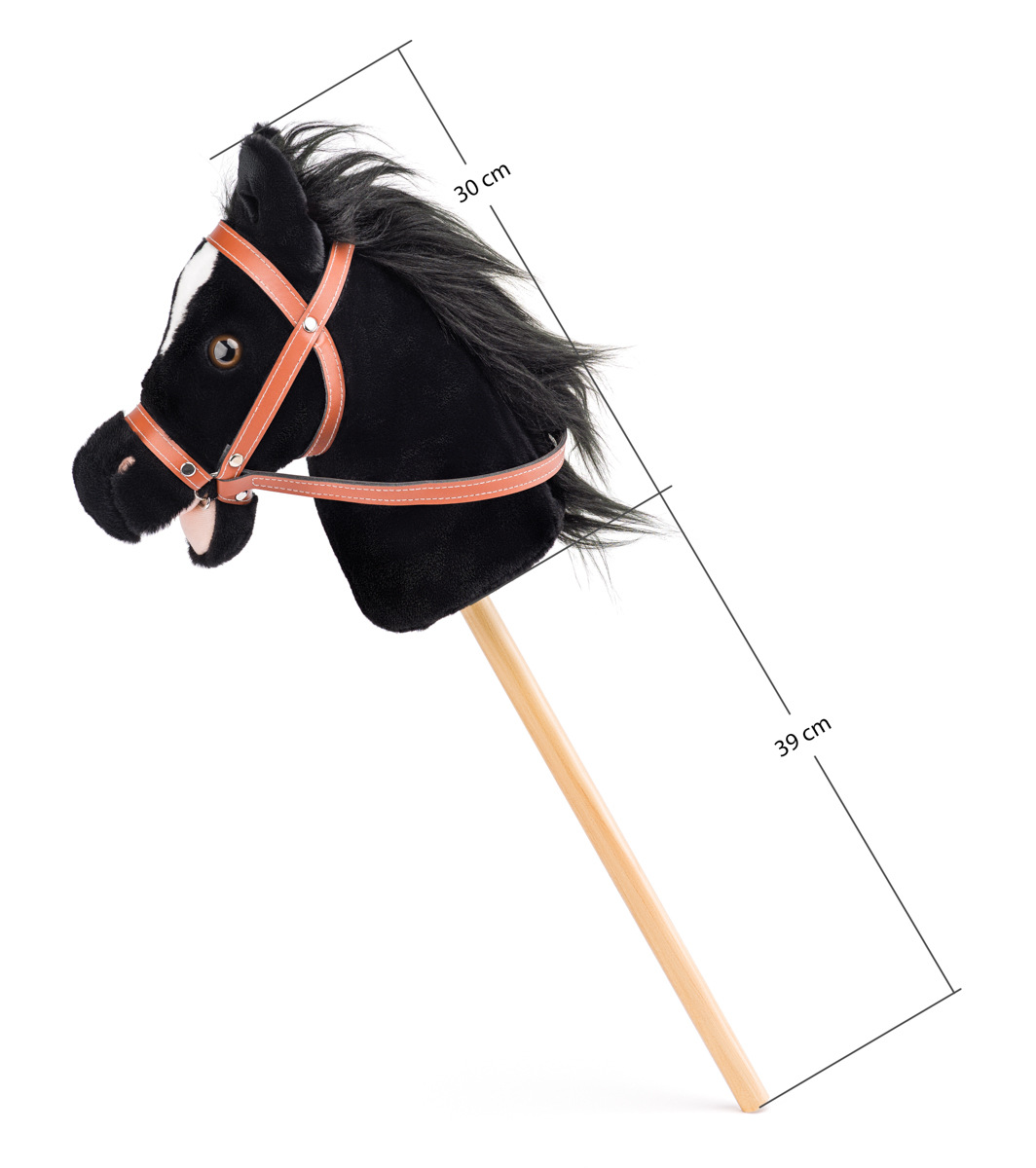 Hobby horsing je ideální volbou pro všechny milovníky koní. Uspořádej s kamarády závod v této speciální disciplíně! Tato krasavice s černou nadýchanou hřívou je dodávána i s odnímatelnou uzdou. Součástí je dřevěná šroubovací tyč (viditelná část: 34 cm). Hlava je vyrobena z polystyrénového materiálu obaleného měkkým kvalitním plyšem.| Věk: 3+| Rozměr komplet výrobku: 62 cm