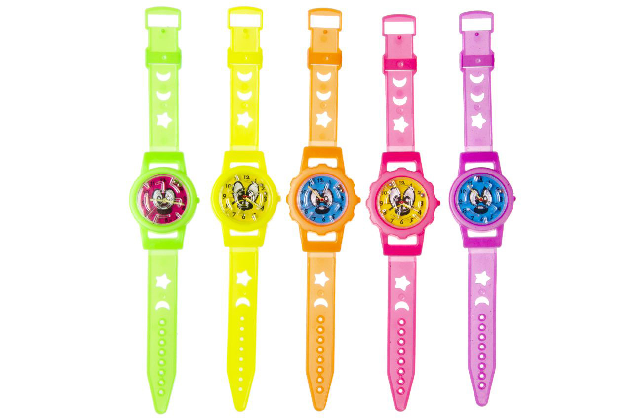 Úžasné dětské hodinky v neonových barvách, 5 druhů, v ciferníku je kuličkový labyrint, 20 cm, nastavitelný řemínek se zapínáním