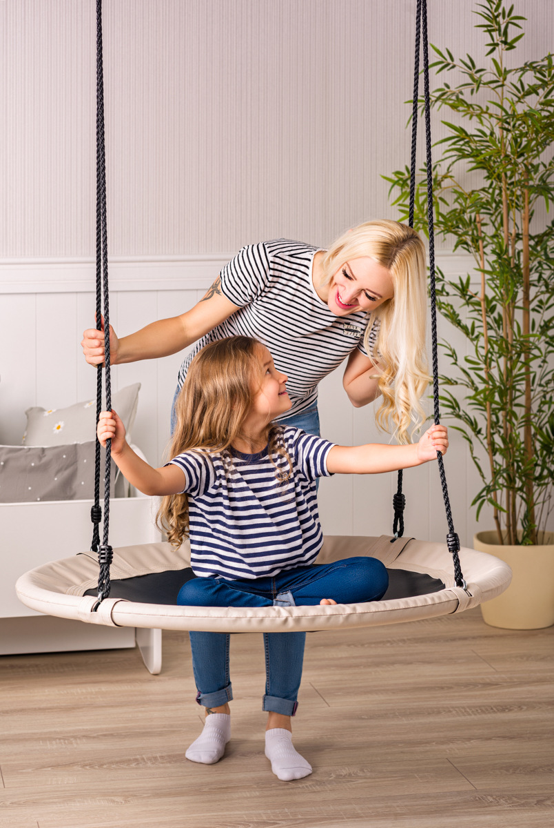 Ta nejlepší volba pro vaši zahradu! Houpačka vás překvapí svým komfortem a velikostí. Plachta uvnitř konstrukce zajistí pohodlné posezení bez otlačení :-). Slouží nejen k houpání, ale i k relaxaci. Houpačku lze na začátku sezóny lehce smontovat i demontovat pro snadné uložení. Průměr: 100 cm, délka lan: 95 x 155 cm. Nosnost: 150 kg. Věk: 3+