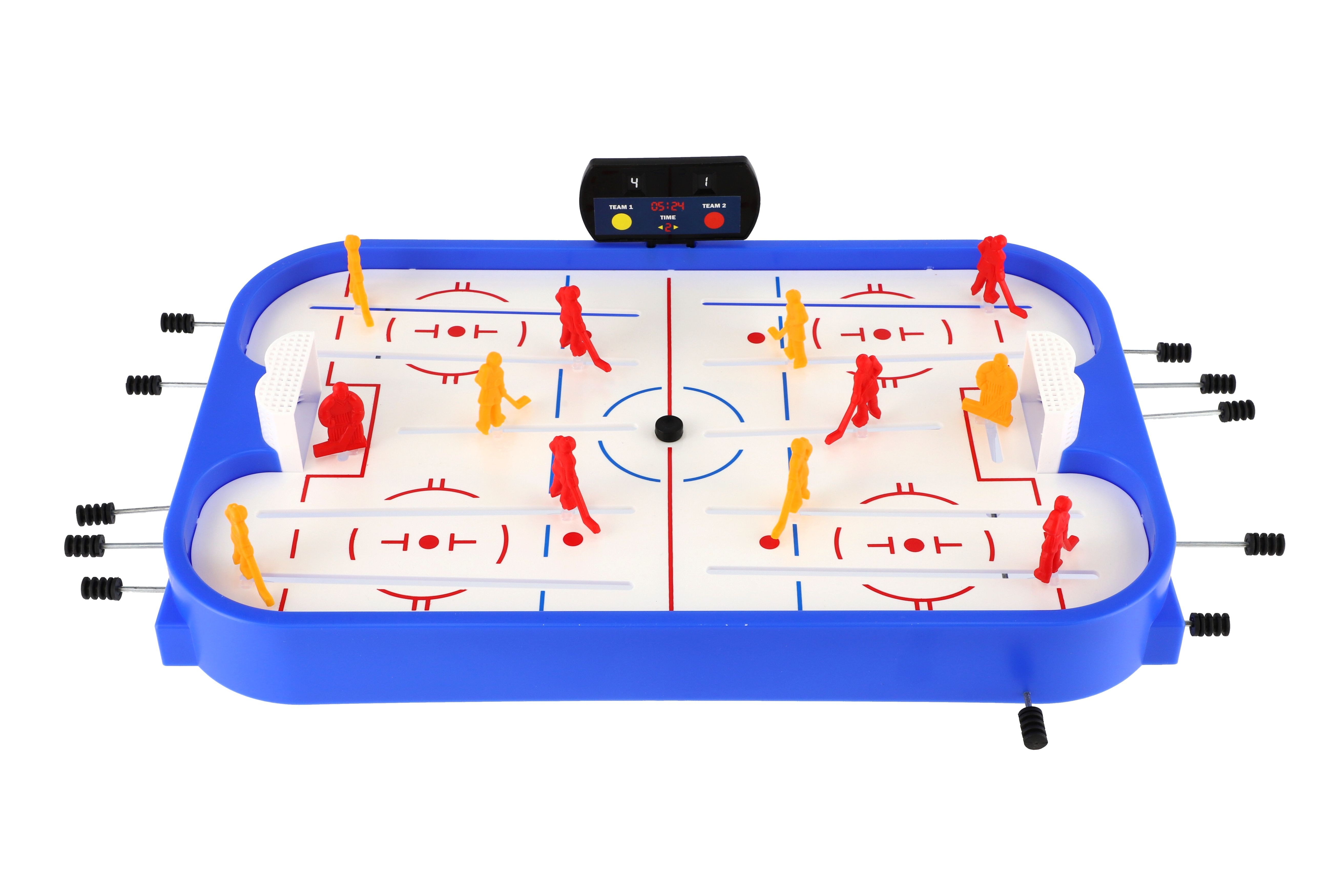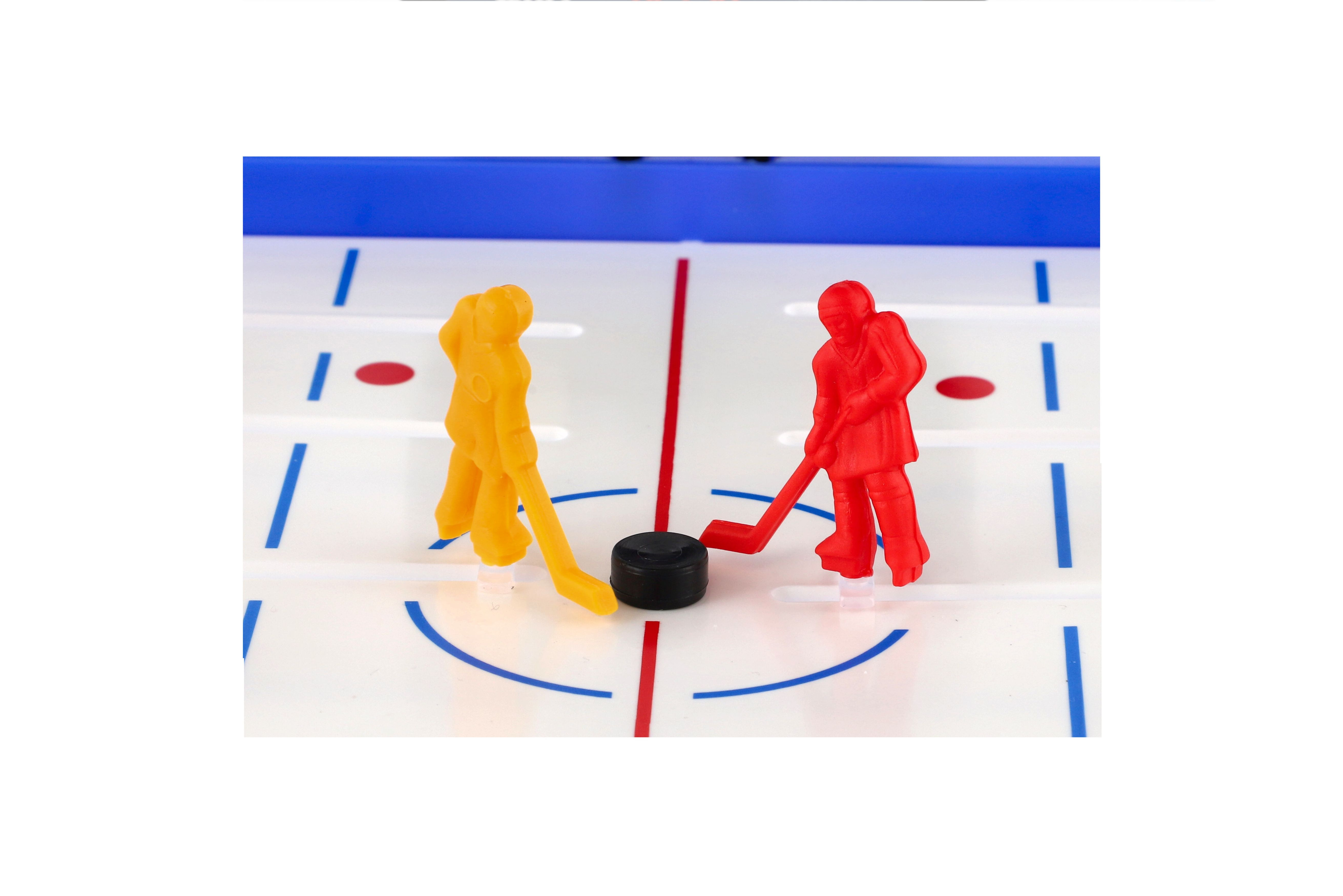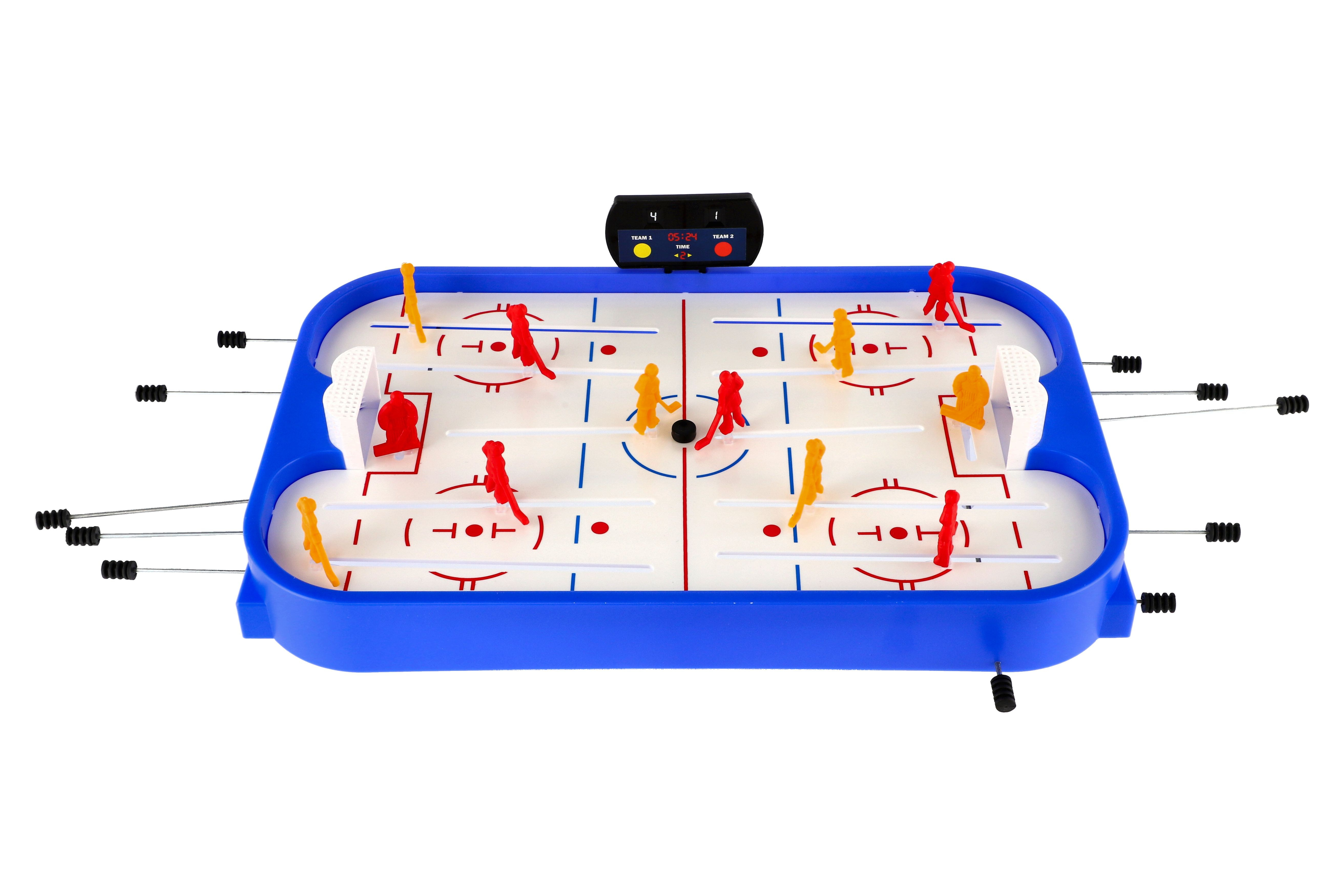 Stolní hokej je blesková hra pro dva hráče, která zlepšuje reakci a postřeh. Puk je nadnášený vzduchem z ventilátoru umístěného pod herní plochou. To zaručuje minimální tření a puk klouže na hřišti velkou rychlostí. Rozměry hrací plochy 50×31×10,5 cm