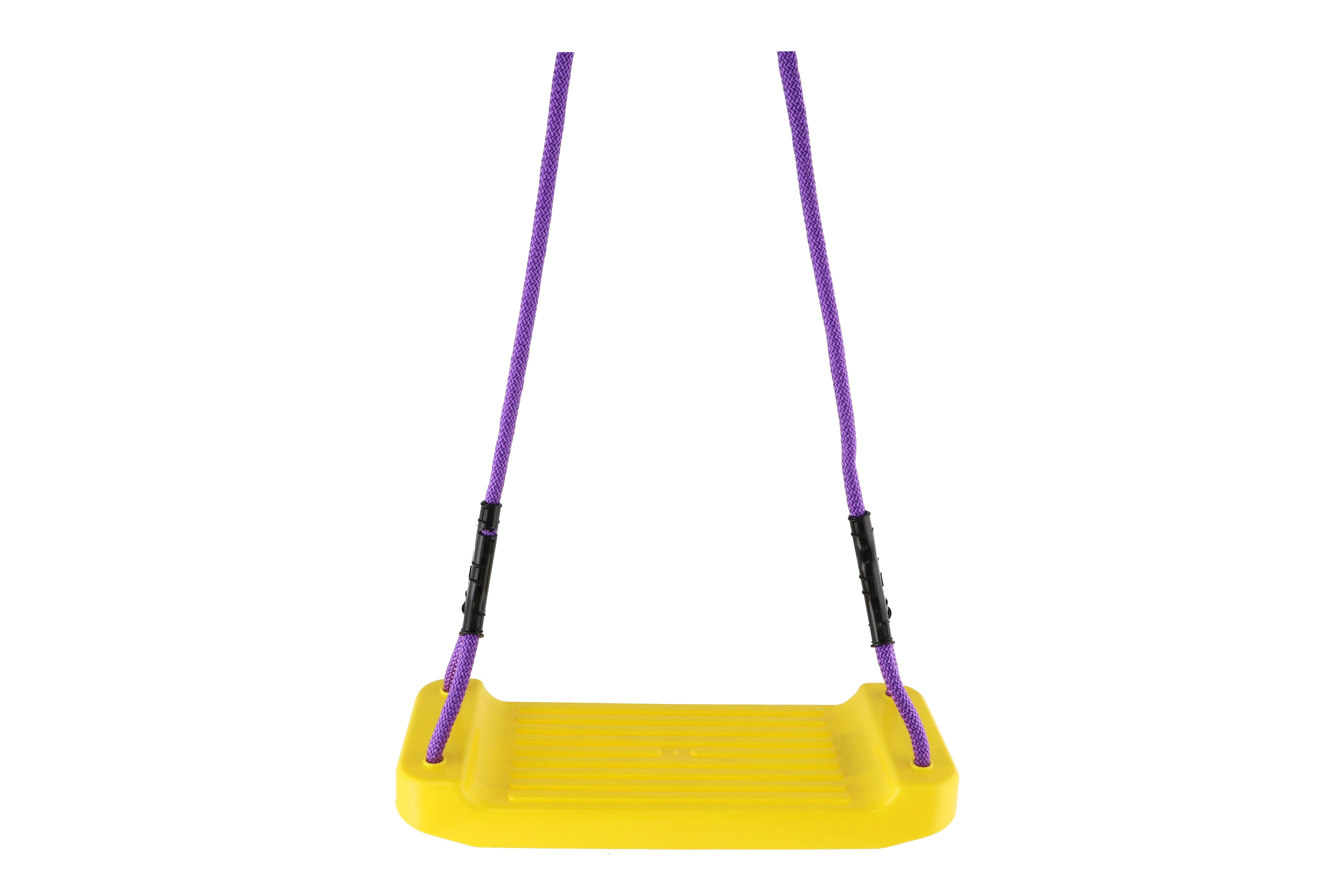 Krásná barevná houpačka. Vhodná pro použití doma i na zahradě. Houpačka je bezpečná a stabilní. Rozměr sedáku 43x17 cm. Maximální nosnost je 25 kg. Vyrobeno z certifikovaných materiálů. Baleno v síťce. Vhodné pro děti od 3 let.