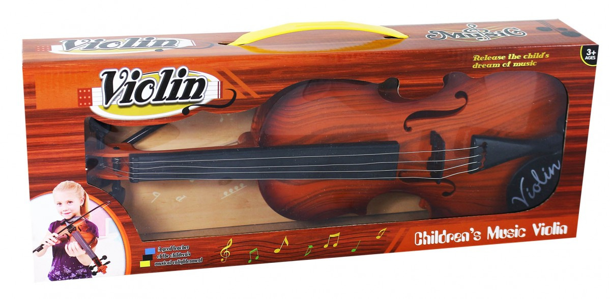 Plastové housle se smyčcem, pouze hračka. Vše je uloženo v krabici s praktickým úchytem. Doporučeno pro děti od 3 let.