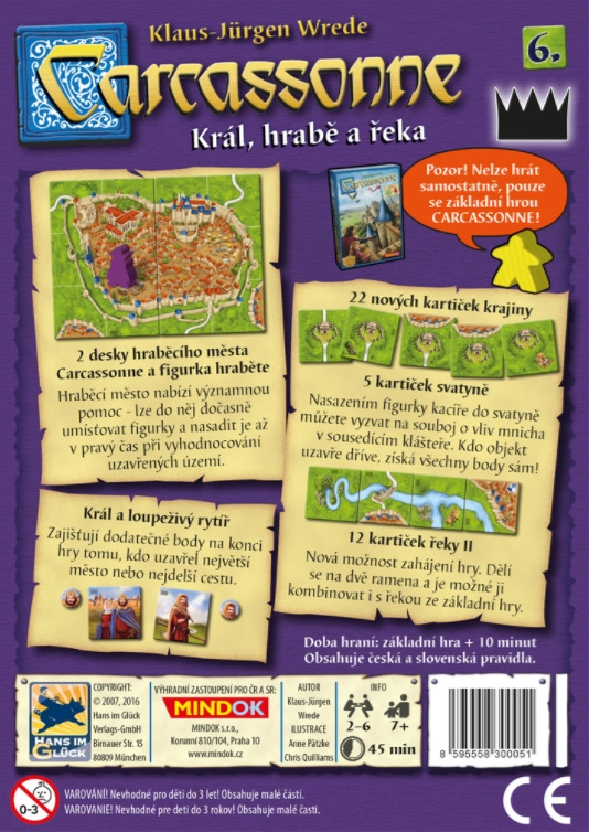 Šesté rozšíření hry Carcassonne. Jedná se o sbírku řady minirozšíření vydaných v průběhu postupného rozvoje hry Carcassonne. Obsahuje minirozšíření: Král a loupeživý rytíř, Řeka II, Hrabě z Carcassonne a úplně nové minirozšíření Kacíři a kultovní místa. Jednotlivá rozšíření se dají do hry přidat dohromady, nebo každé zvlášť.Více