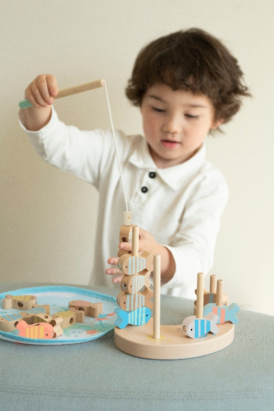 Tuto rybářskou hru lze hrát více způsoby! Můžete chytat ryby pomocí přiložených magnetických rybářských prutů a poté je pokládat na multifunkční stohovací desku. Ryby můžete stohovat na kůly nebo otočit plošinu na stranu, čímž získáte velrybu a balanční hru. Deska s kůly obsahuje také čísla, aby se děti mohly při zábavě naučit poznávat čísla .Hra poskytne spoustu úsměvu a radosti a zároveň zlepší reflexy a koncentraci. Jsme si jisti, že tato klasická hra vyvolá spoustu vzrušení a také naučí děti zásady zdravé konkurence. Rybářská hračka je navržena v jasné barvě, která snadno upoutá pozornost dětí. Pozor! Tato hračka obsahuje magnety nebo magnetické části. Magnety přitahující se k sobě navzájem nebo ke kovovému předmětu uvnitř lidského těla mohou způsobit vážné zranění. V případě spolknutí či vdechnutí magnetů vyhledejte okamžitou lékařskou pomoc.