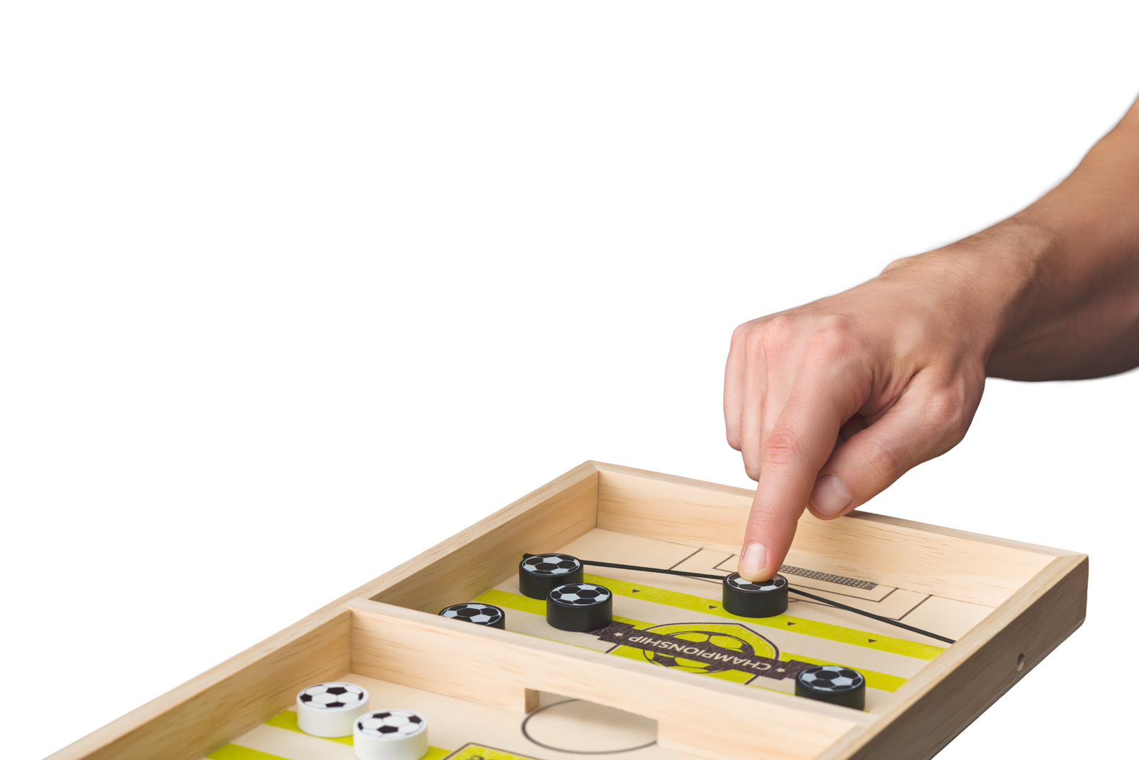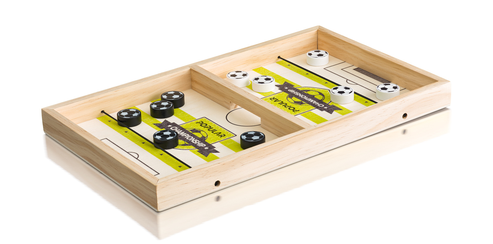 Skvělá stolní hra s neuvěřitelným nábojem. Základ tvoří hrací deska s gumičkami na obou stranách a žetony. Cílem hry je nastřílet všechny žetony ze své hrací plochy na hrací plochu protihráče a to otvorem v dřevěné přepážce. Problém je v tom, že soupeř se snaží o totéž! Chce to být rychlý, ale také přesný! | Věk: 3+ | Rozměr: 36 x 22 x 2,8 cm