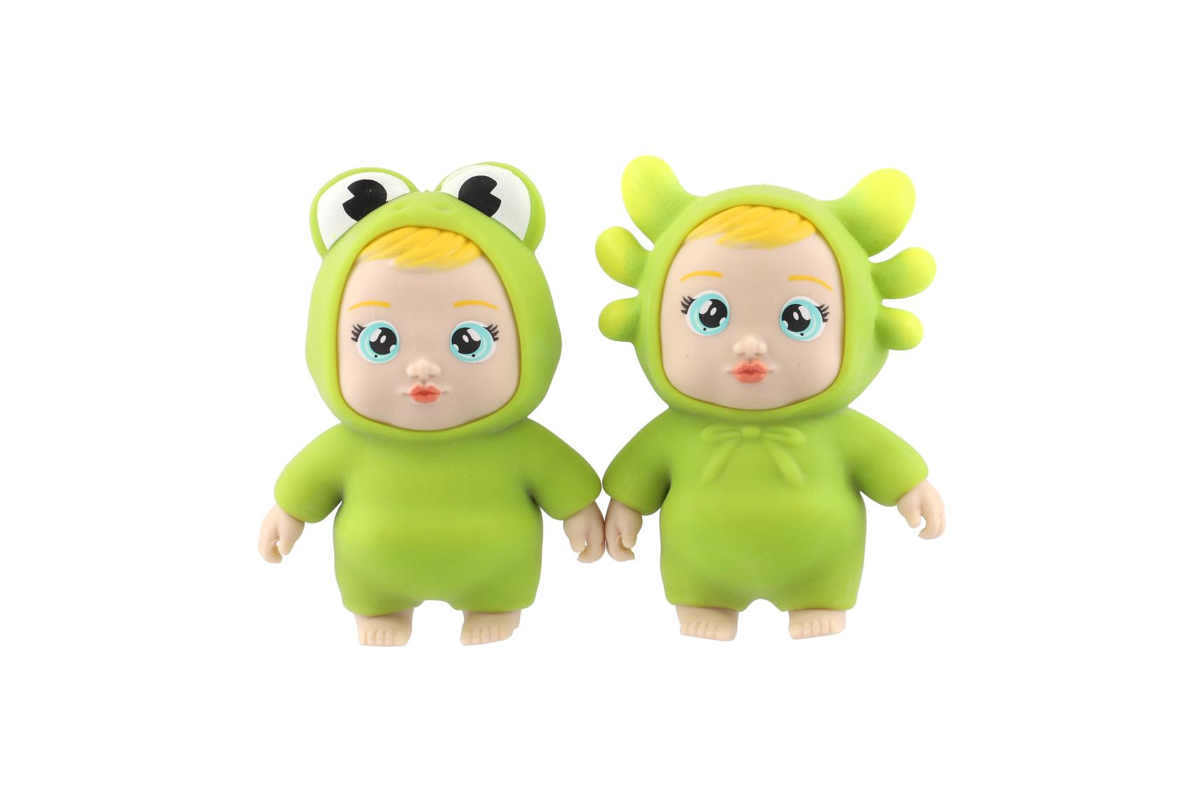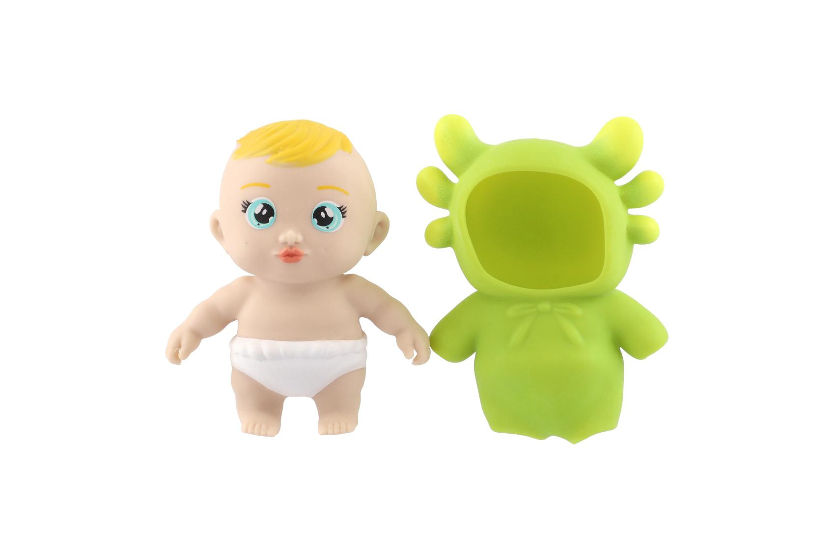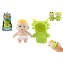 Roztomilé antistresové miminko v elastickém zvířecím kostýmu je ideální hračkou pro děti i dospělé, kteří si potřebují odpočinout a uvolnit napětí. Hračka je vyrobena z měkkého a příjemně pružného silikonu, který se po zmáčknutí vždy vrátí do původního tvaru. Zábavný prvek spočívá v tom, že miminko lze vytáhnout z oblečku – a znovu ho do něj schovat. To podporuje jemnou motoriku a rozvíjí představivost při hře. Rozměry výrobku 10 x 14 x 6 cm Vhodné pro děti od 3 let