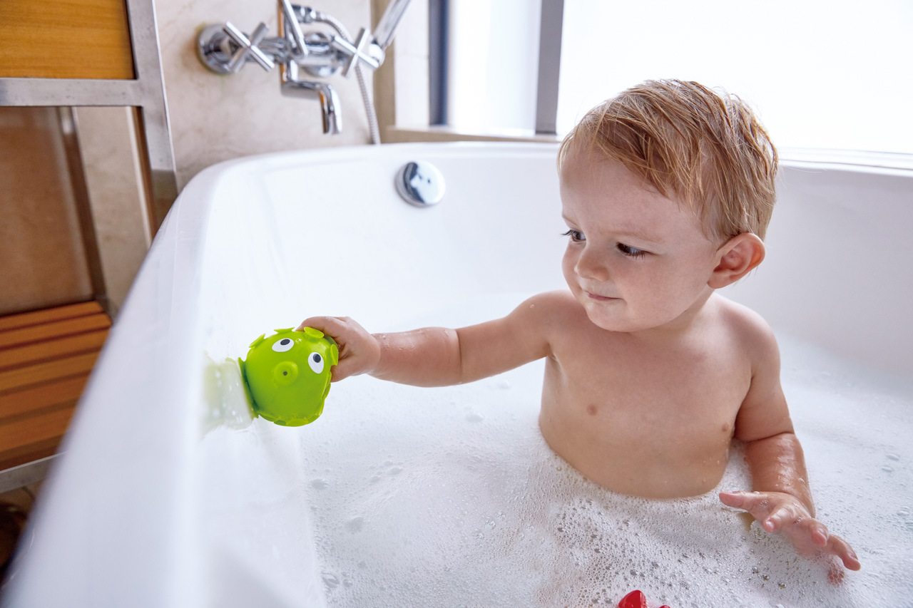Čas koupele prostě dostal více zábavy! Doba koupele je jednou z nejhravějších částí dne. Naplňte kbelíky vodou a bublinkami nebo noste kamarády na koupání. Oblečený v rozkošném pruhovaném kompletu a zajištěný zářivě modrým plaveckým kroužkem. Tento malý medvídek stačí natáhnout a je připraven plavat kolem vany! Tato veselá velryba prostě miluje vyfukování bublin! Naplňte jeho hubici 3-5 kapkami perličkové koupele nebo tekutého mýdla a ponořte ho do vany. Přísavka na hvězdici umožňuje její přilepení k povrchu. Zatímco vy jemně namydlíte své ratolesti, nechte je přilepit hvězdice na vanu nebo jakýkoli jiný povrch. Balení: 11x24x43cm. Věk: 18m+