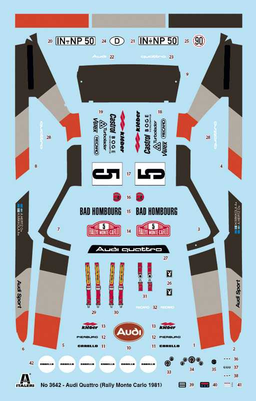 Popis Italeri Model Kit auto 3642 - Audi Quattro Rally (1:24)
