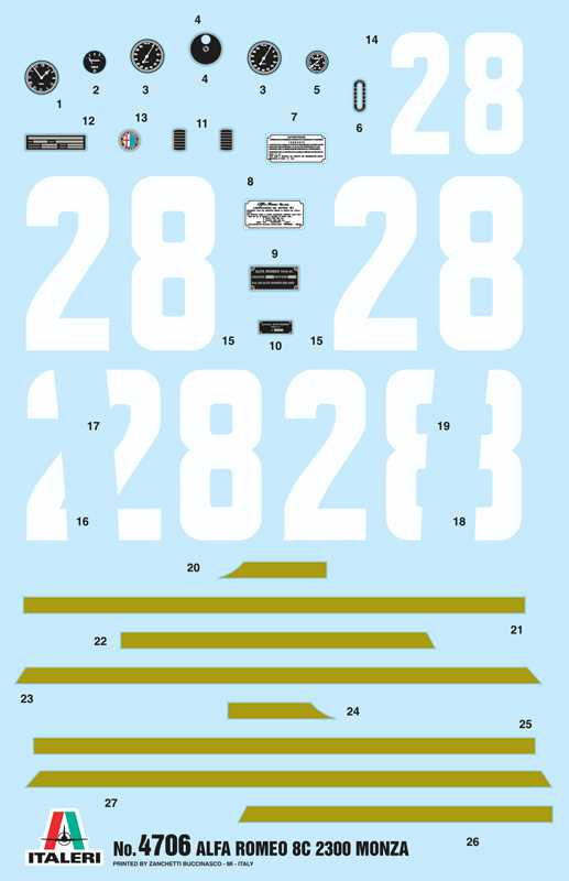 Popis Italeri Model Kit auto 4706 - ALFA ROMEO 8C 2300 Monza (1:12)