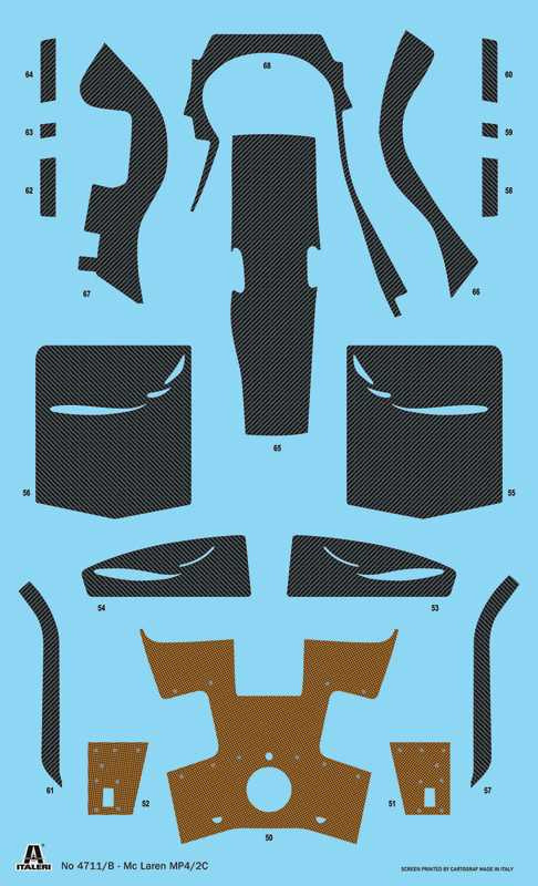 Popis Italeri Model Kit auto 4711 - Mc Laren MP4/2C Prost Rosberg (1:12)