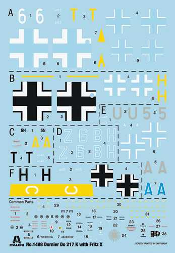 Popis Italeri Model Kit letadlo 1488 - Do 217K with Fritz X (1:72)