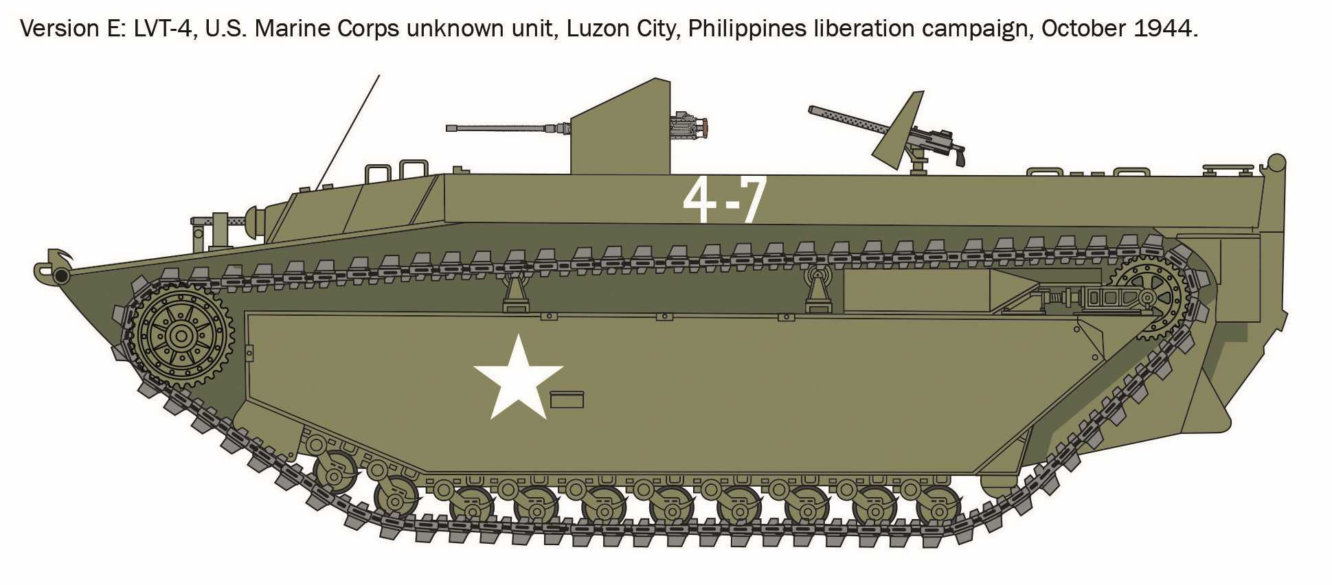 Informace o originálu: Pásová vozidla L.V.T. (zkratka pro Landing Vehicle Tracked) byla vyvinuta s cílem vybavit ozbrojené síly Spojených států, včetně armády a námořní pěchoty, vhodným vozidlem pro obojživelné operace, které by bylo schopné poskytnout dobrou úroveň ochrany. Často se jim říkalo „Amtrac“ a byly hojně využívány na pacifickém válčišti proti japonským silám a v posledním roce války také na evropském válčišti. Zejména LVT-4 představovaly výrazné zlepšení oproti předchozím verzím. Díky přepracované konstrukci byl motor přemístěn do středové polohy, čímž se uvolnila zadní část vozidla pro přidání rampy, která umožňovala rychlé nakládání a vykládání lehkých vozidel nebo dělostřeleckých zbraní malé ráže na podporu vyloďovacích jednotek. Jednalo se o nejúspěšnější verzi s největším počtem vyrobených vozidel.
