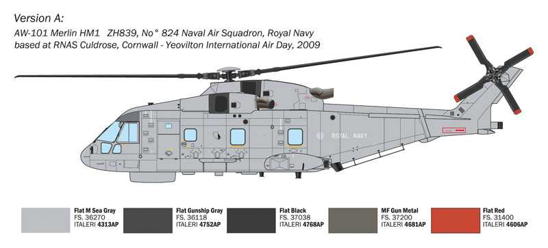 Popis Italeri Model Kit vrtulník 1486 - AW-101 Merlin HM.1 (1:72)
