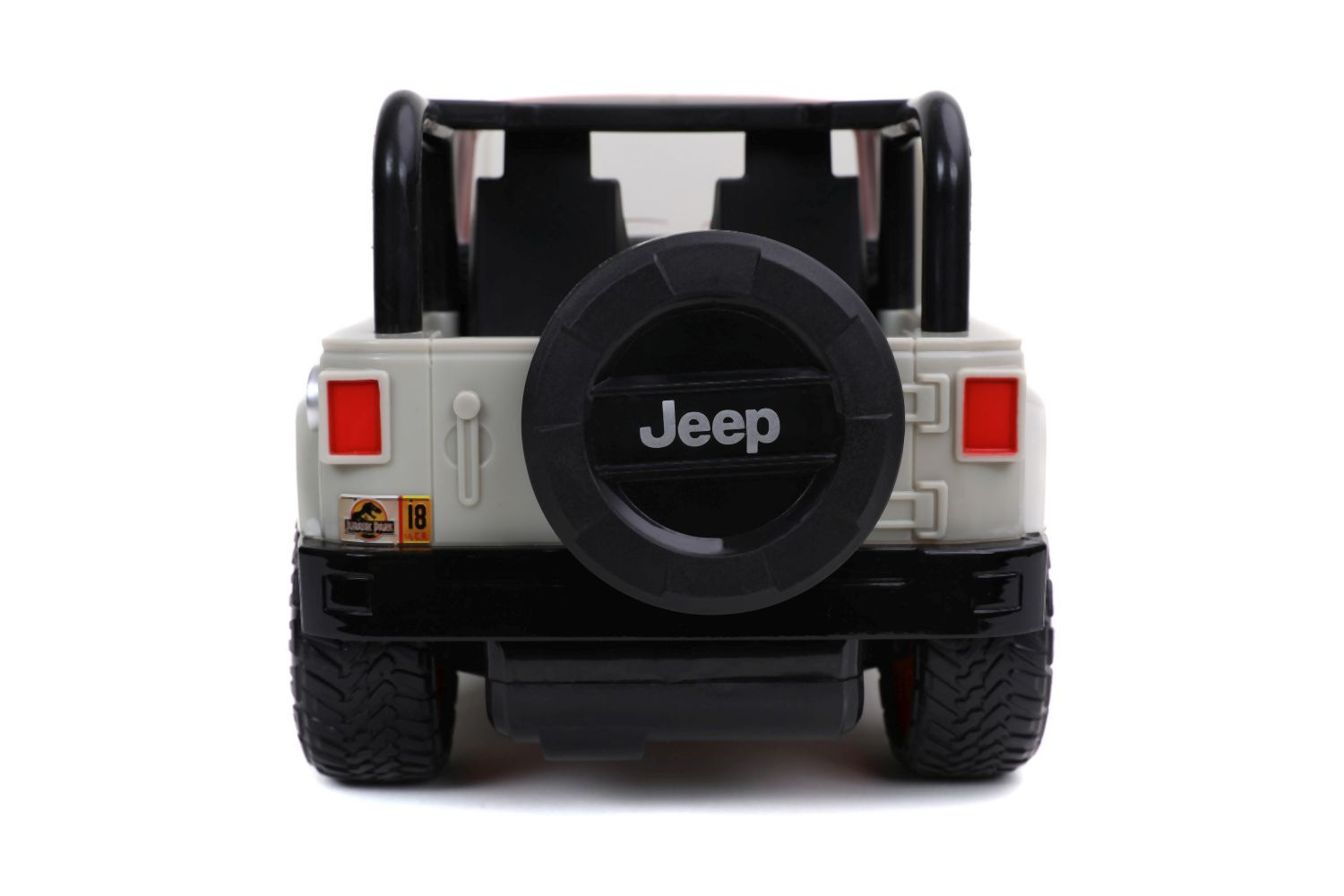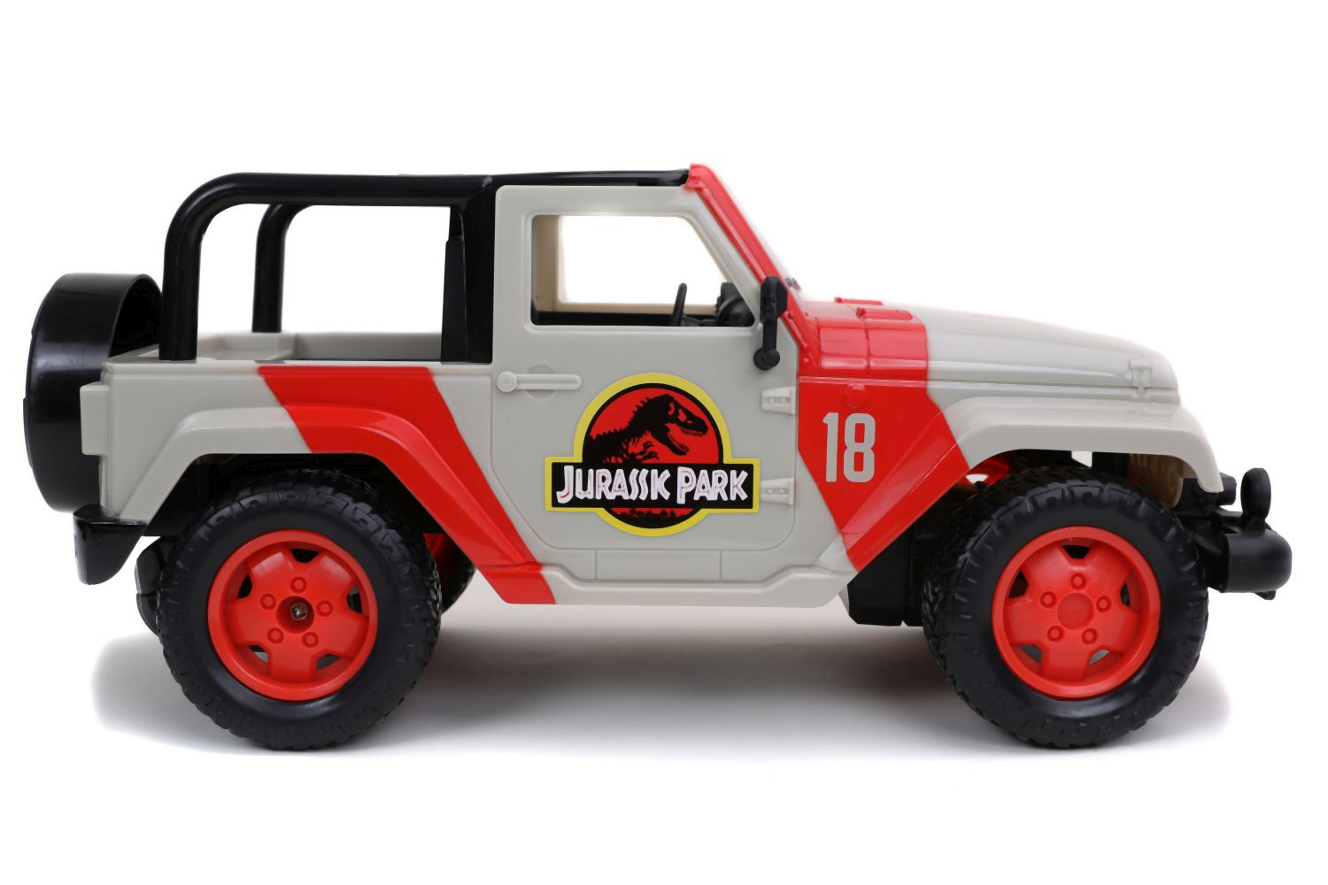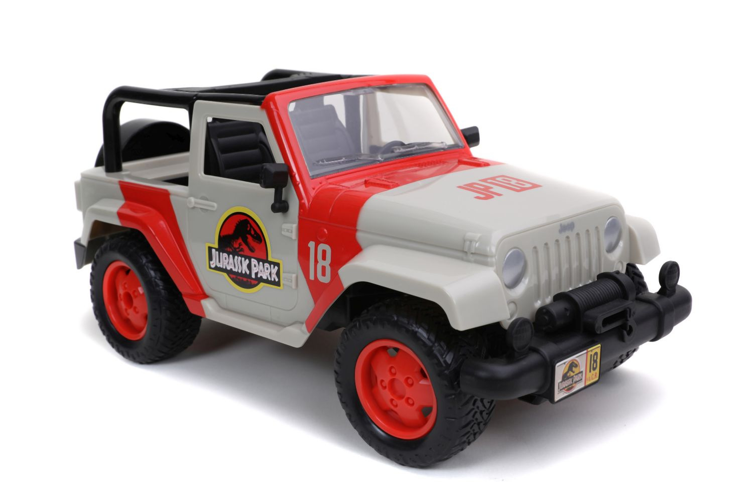 Auto Jurassic World Jeep Wrangler na dálkové ovládání. 2 kanály (jezdí vpřed, vzad, vlevo a vpravo). Funkce turbo. Frekvence 2,4 GHz.Dosahuje rychlosti až 9 km/h. Délka 30 cm. Barva červená a béžová. V měřítku 1:16.