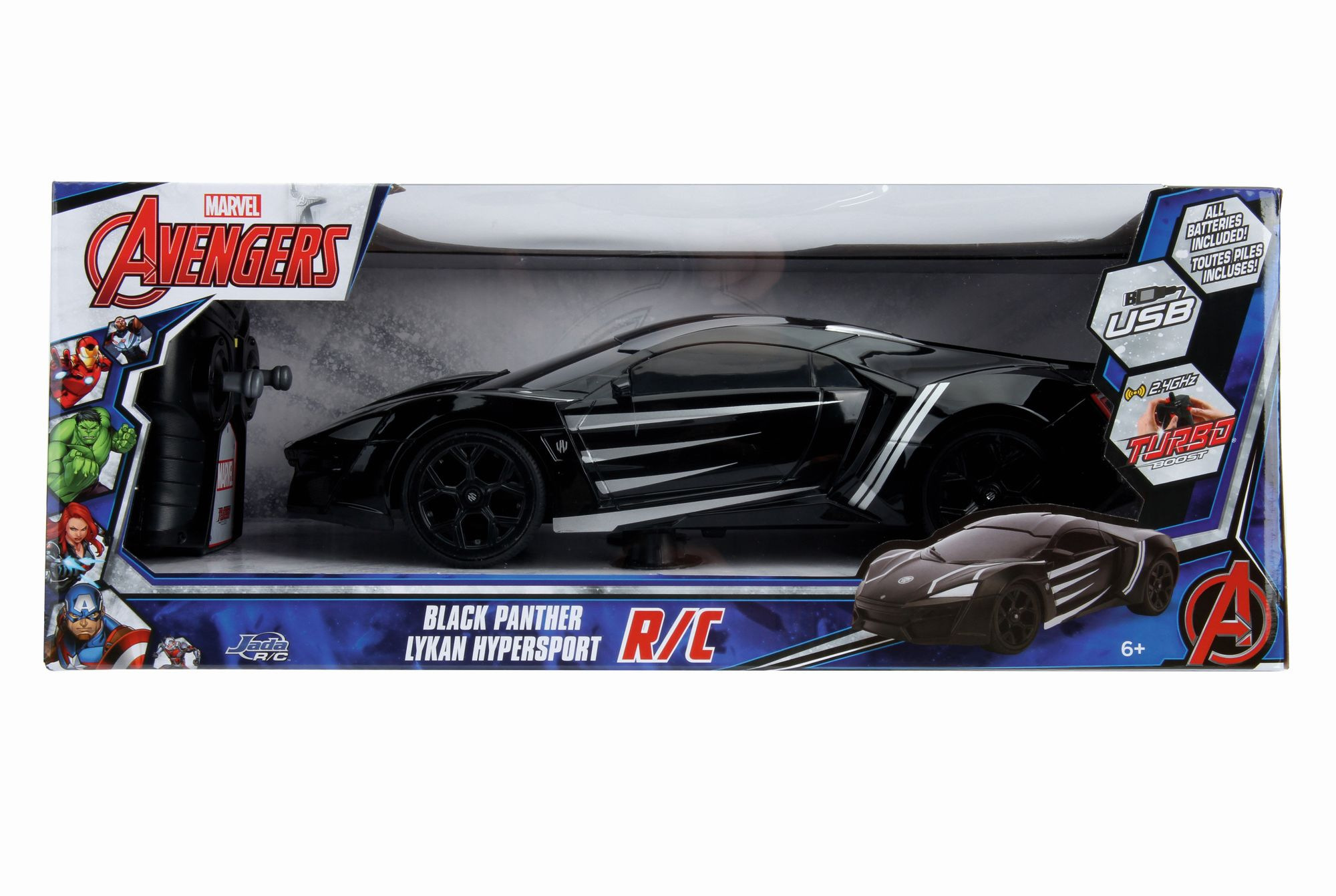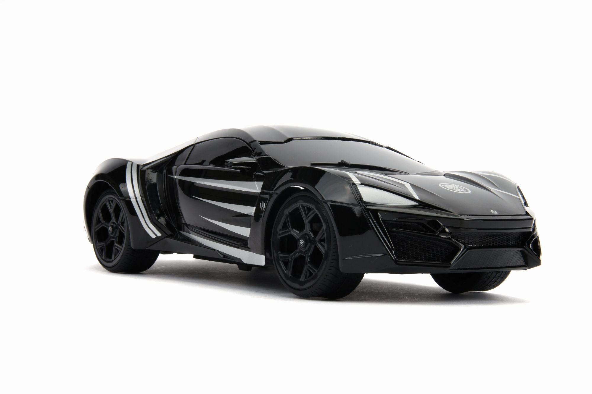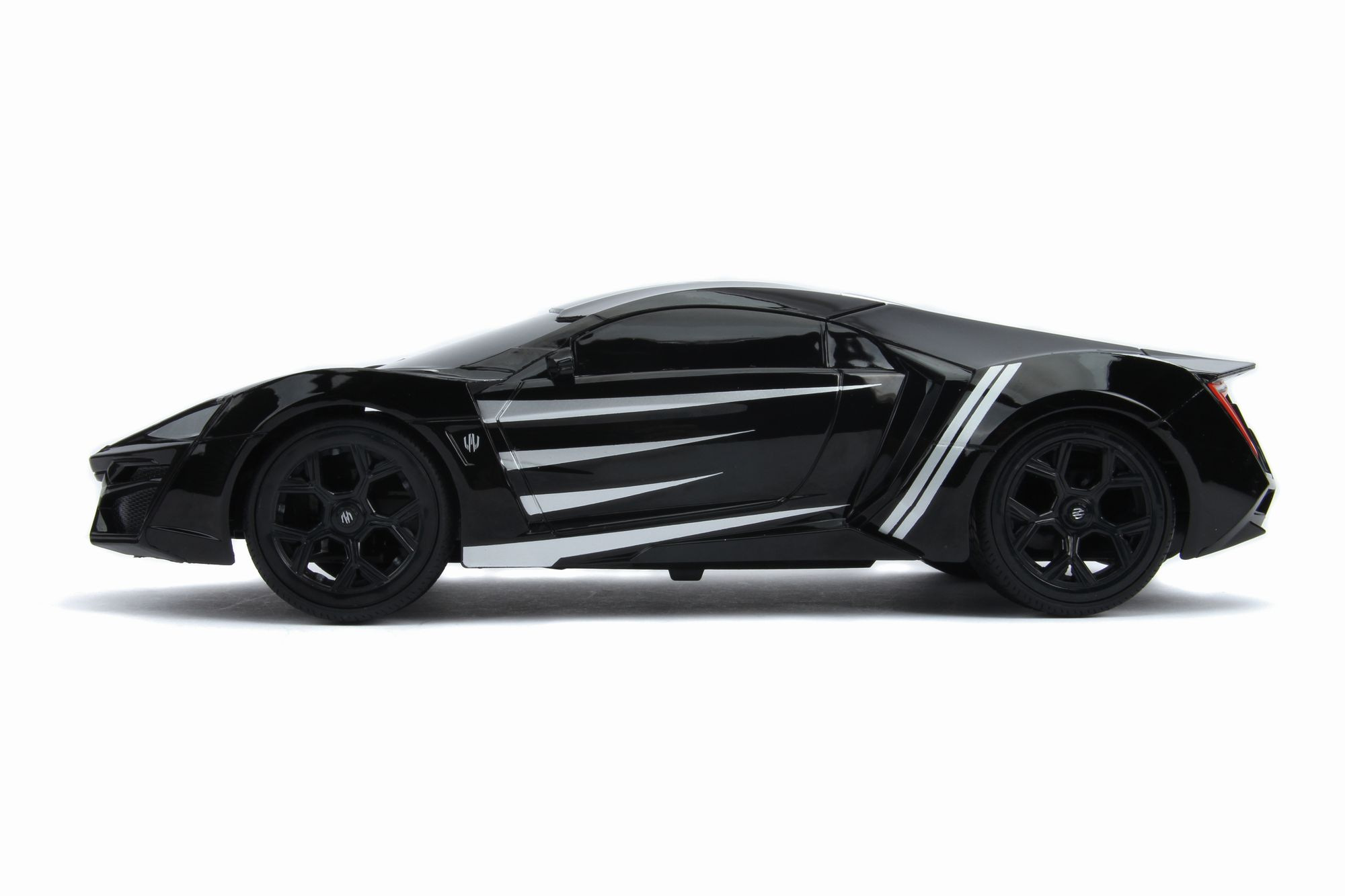 W Motors Lykan HyperSport přebírá své stylistické prvky přímo od krále Wakandy: Black Panthera. Rádiem řízené RC auto v měřítku 1:16 je vybaveno technologií nabíjení USB a všemi bateriemi, které jsou součástí balení, a je připraveno ihned k použití. 2-kanálové, frekvence 2,4 GHz, funkce Turbo, jezdí vpřed-vzad a vlevo-vpravo, v černé barvě. Rychlost 9 km/h. Délka 29 cm.