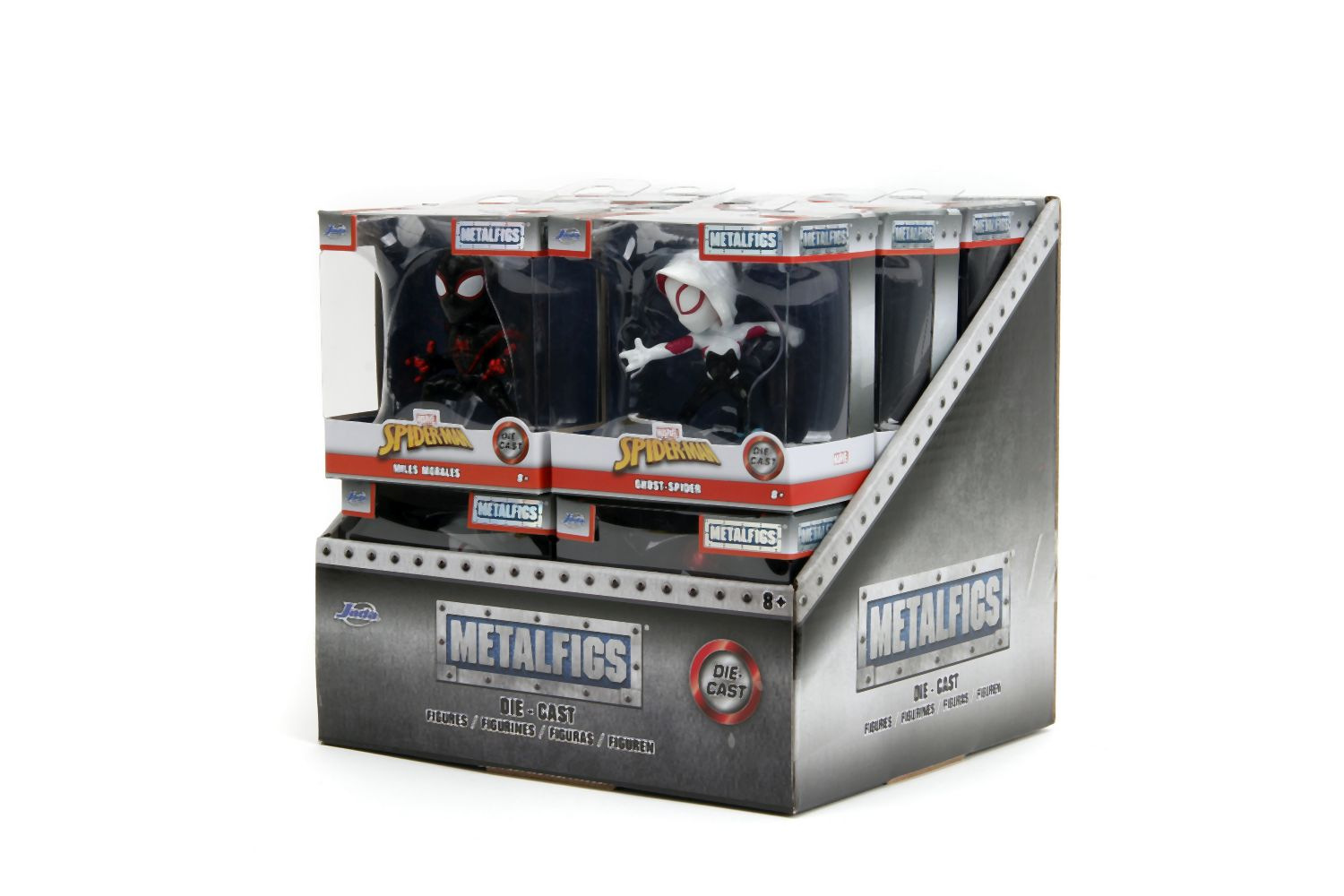 Kovová sběratelská figurka, výška 6,5 cm. 3 druhy, displej obsahuje 12 ks (mix 6x Spiderman, 4x Mile