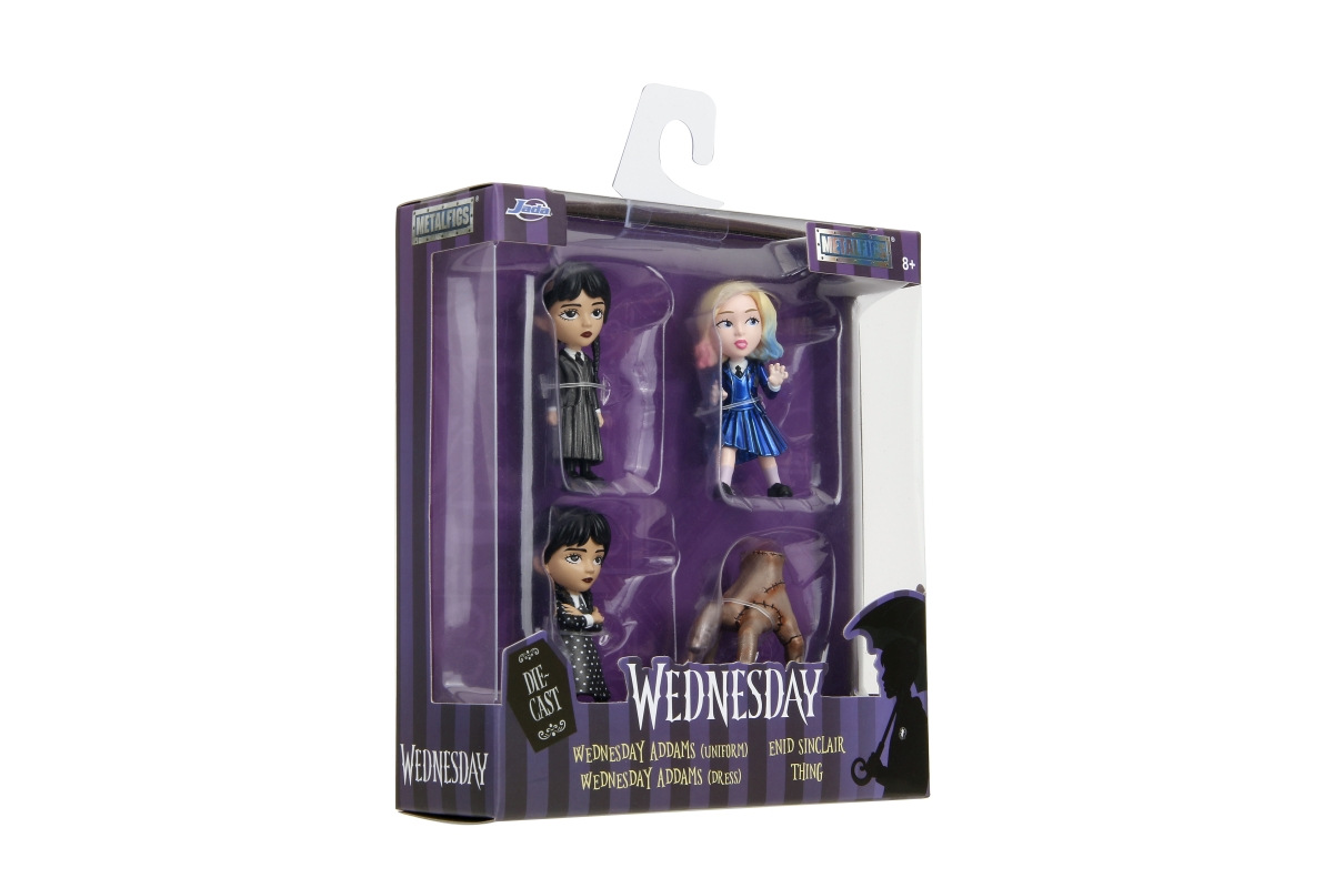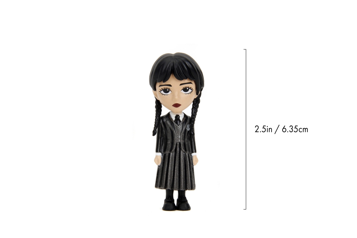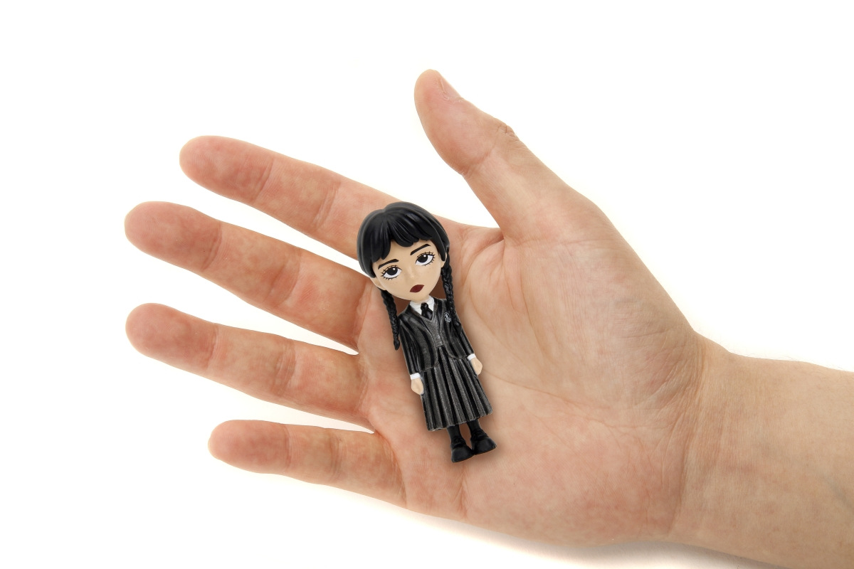Sada 4 kovových figurek z filmu "Wednesday" o velikosti 6 cm. Postavy: Wednesday "proužky", Věc, Wed
