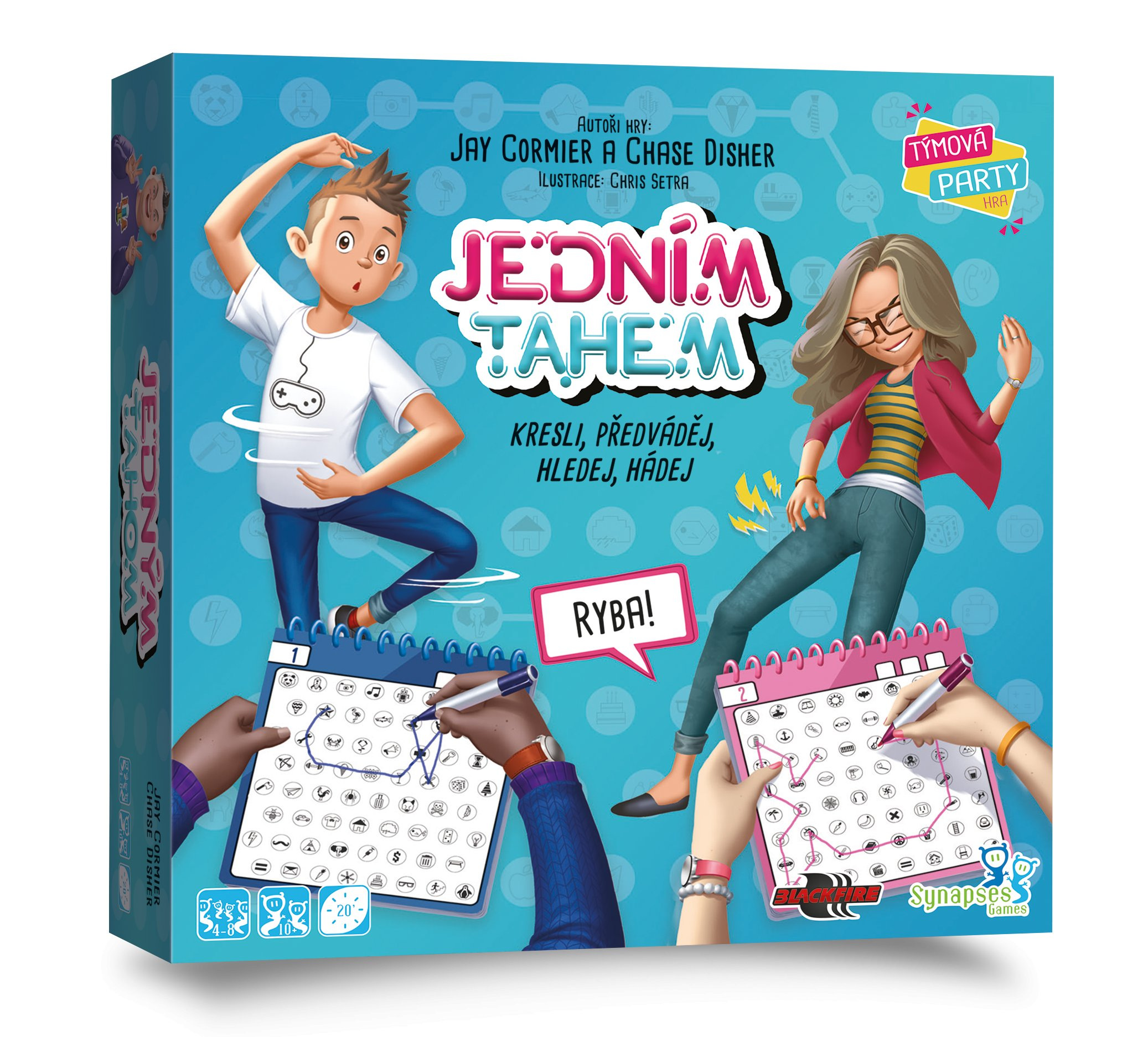 Jedním tahem je týmová party hra, kterou hrají všechny týmy současně. Vítězem je tým, který vyhraje 3 kola. Každý tým tvoří Napovídač a Hádač. Hráč v roli Napovídače kreslí tajemné slovo pro dané kolo tak, že propojí symboly na svém skicáku a následně tyto symboly pantomimou předvede svému Hádači. (Může vydávat i zvuky, ale nesmí používat slova!) Hráč v roli Hádače propojí symboly, které Napovídač pantomimou předvedl, aby nakreslil stejný obrázek a byl první, kdo uhodne tajemné slovo. Klíčem k vítězství je rychlost, protože vyhrává tým, který jako první uhodne tajemné slovo.