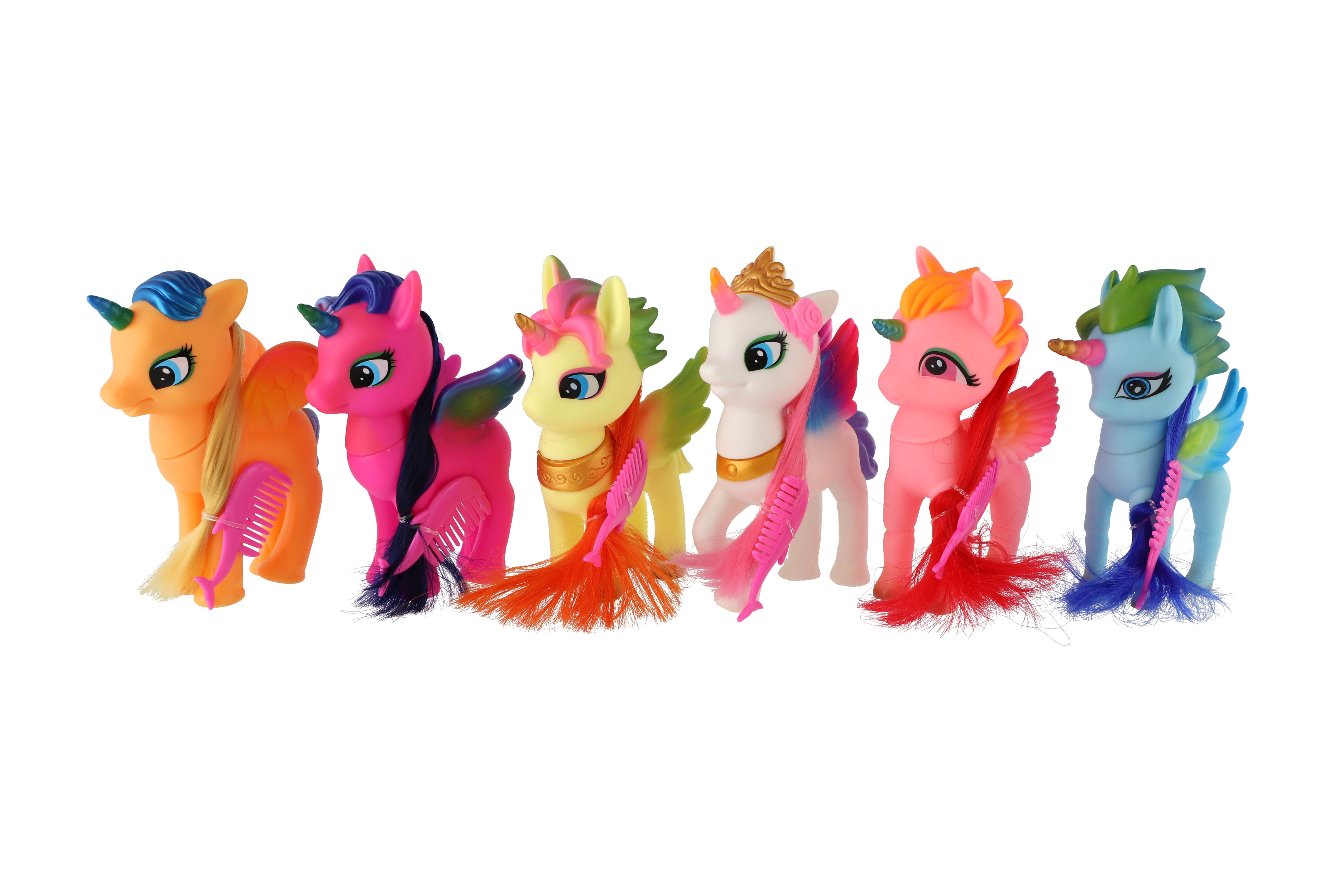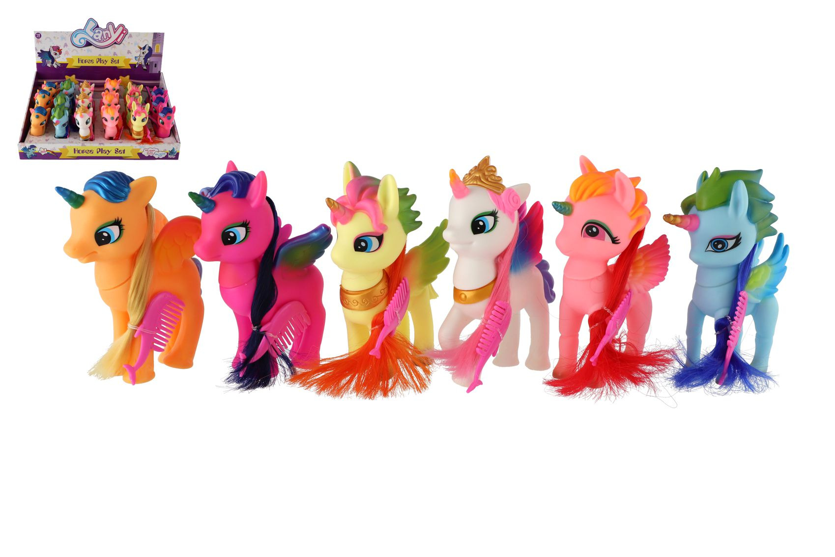 Popis Jednorožec s křídly česací plast 14cm s hřebenem 6 druhů 18ks v boxu