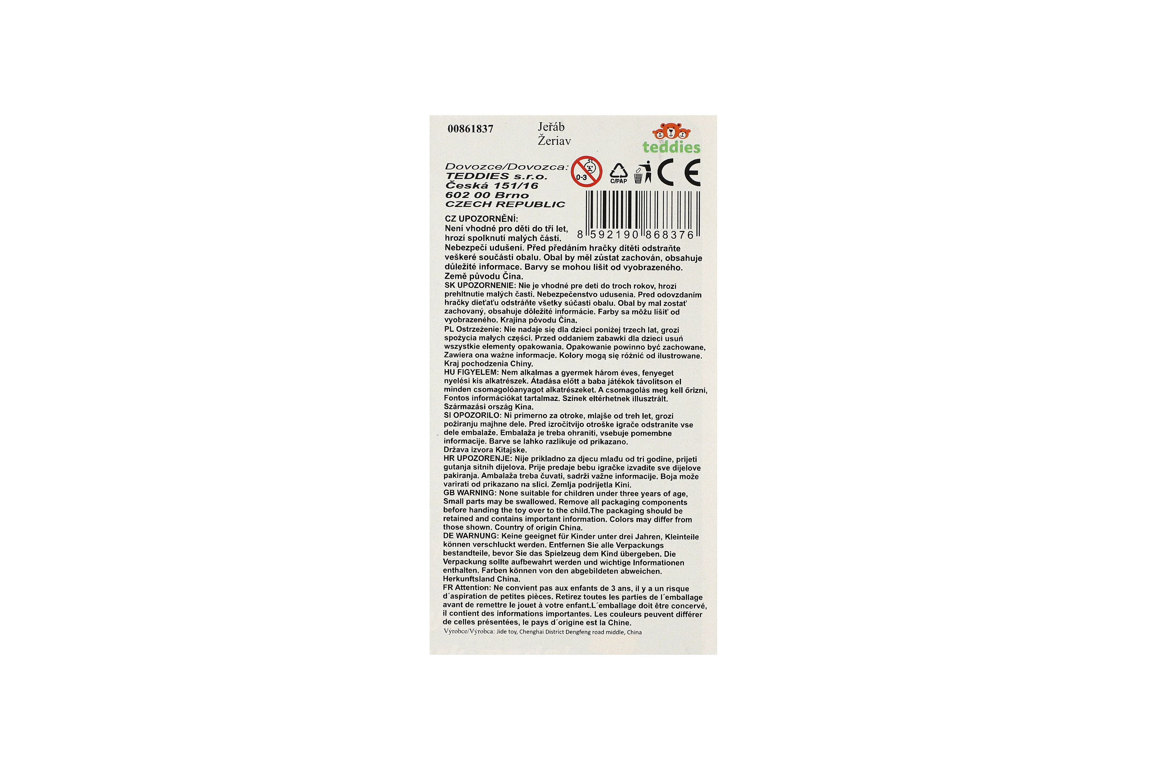 Plně mechanicky funkční autojeřáb o velikosti cca 35 cm. Samotné rameno jeřábu lze otáčet o 360°. Rozměry balení 42 x 19 x 8 cm. Vhodné pro děti od 3 let.