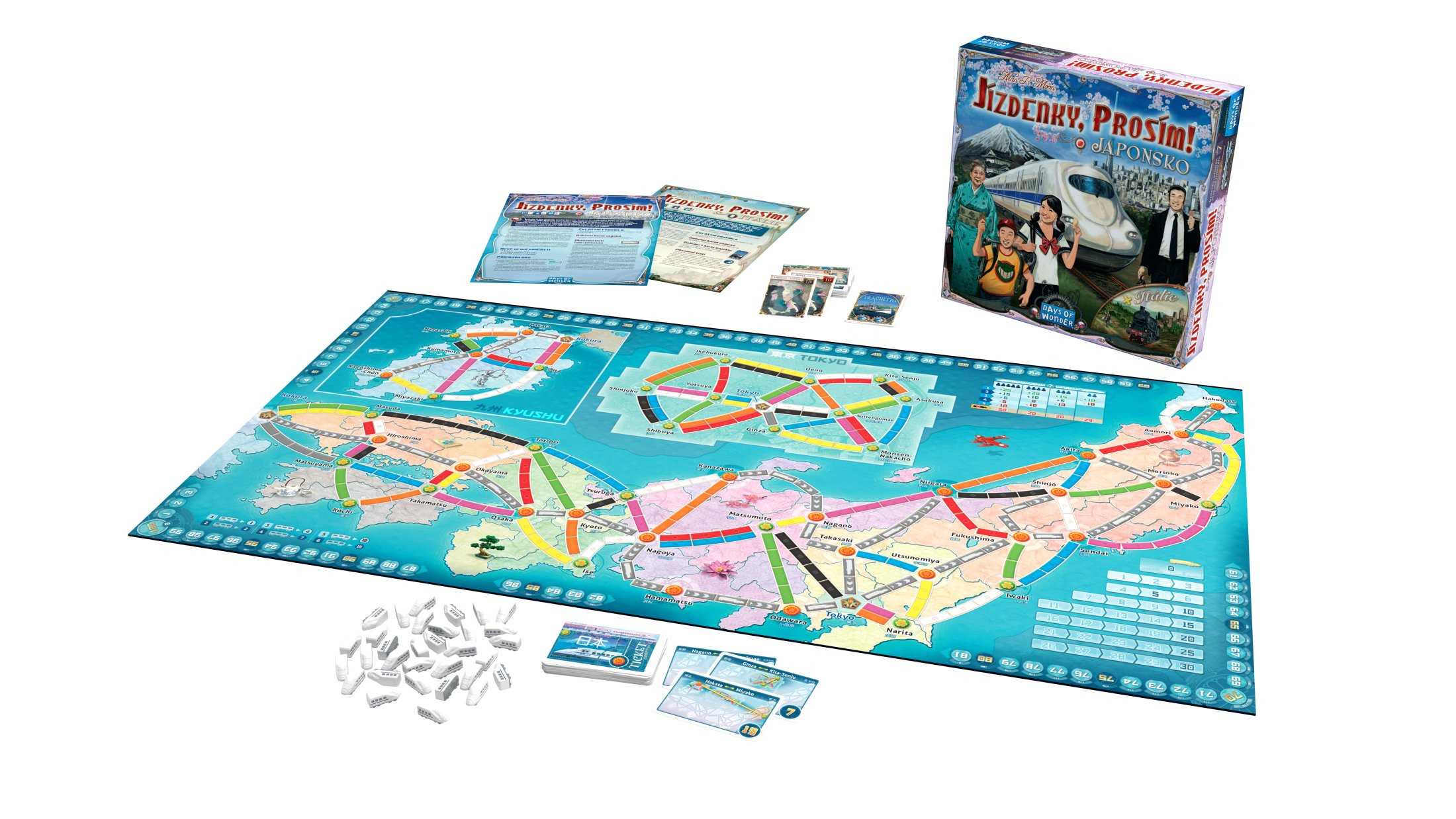 Obsah balení: 110 karet cílových stanic 16 bílých miniatur rychlovlaků 7 značek postupu rychlovlaků 10 karet trajektů Mapa Japonska a Itálie Česká a slovenská pravidla k oběma mapám