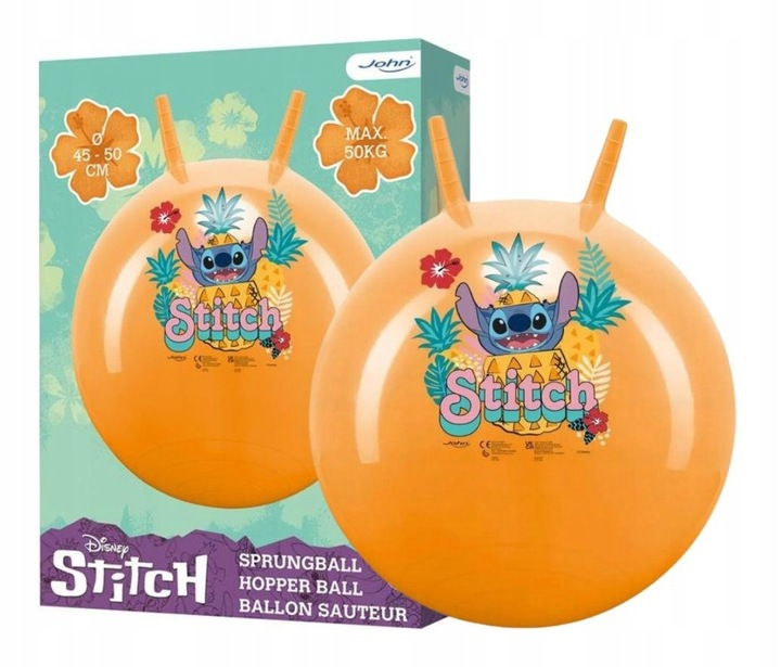 Dětské kvalitní PVC hopsadlo v licenci Hopsadlo Stitch. Průměr nafouklého hopsadla do 50cm. Hopsadlo má 2 úchyty, za které se dítě chytí a může skákat. Nosnost do 50kg. Vhodné na ven i na doma. Baleno v krabici. Doporučený věk 3+
