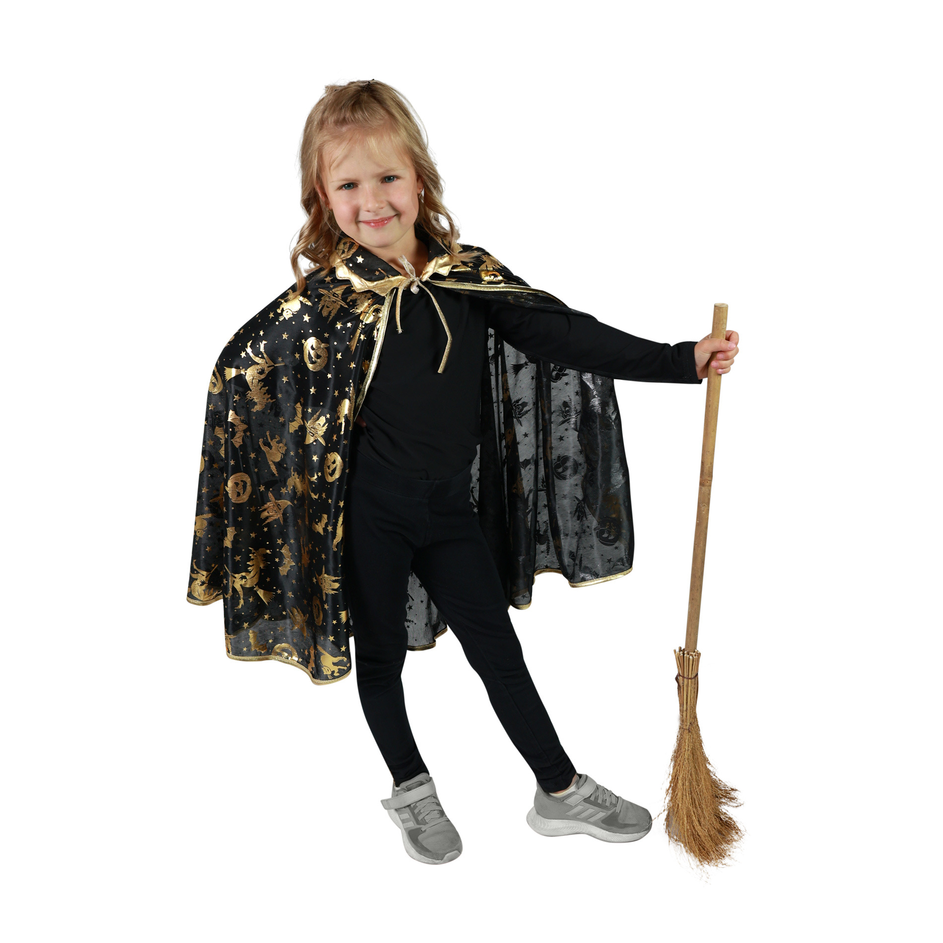 Krásný plášť na karneval nebo Halloween! Černý plášť je dekorován halloweenskými motivy zlaté barvy. Senzace! Doporučeno pro děti ve věkovém rozmezí 3-10 let.Více