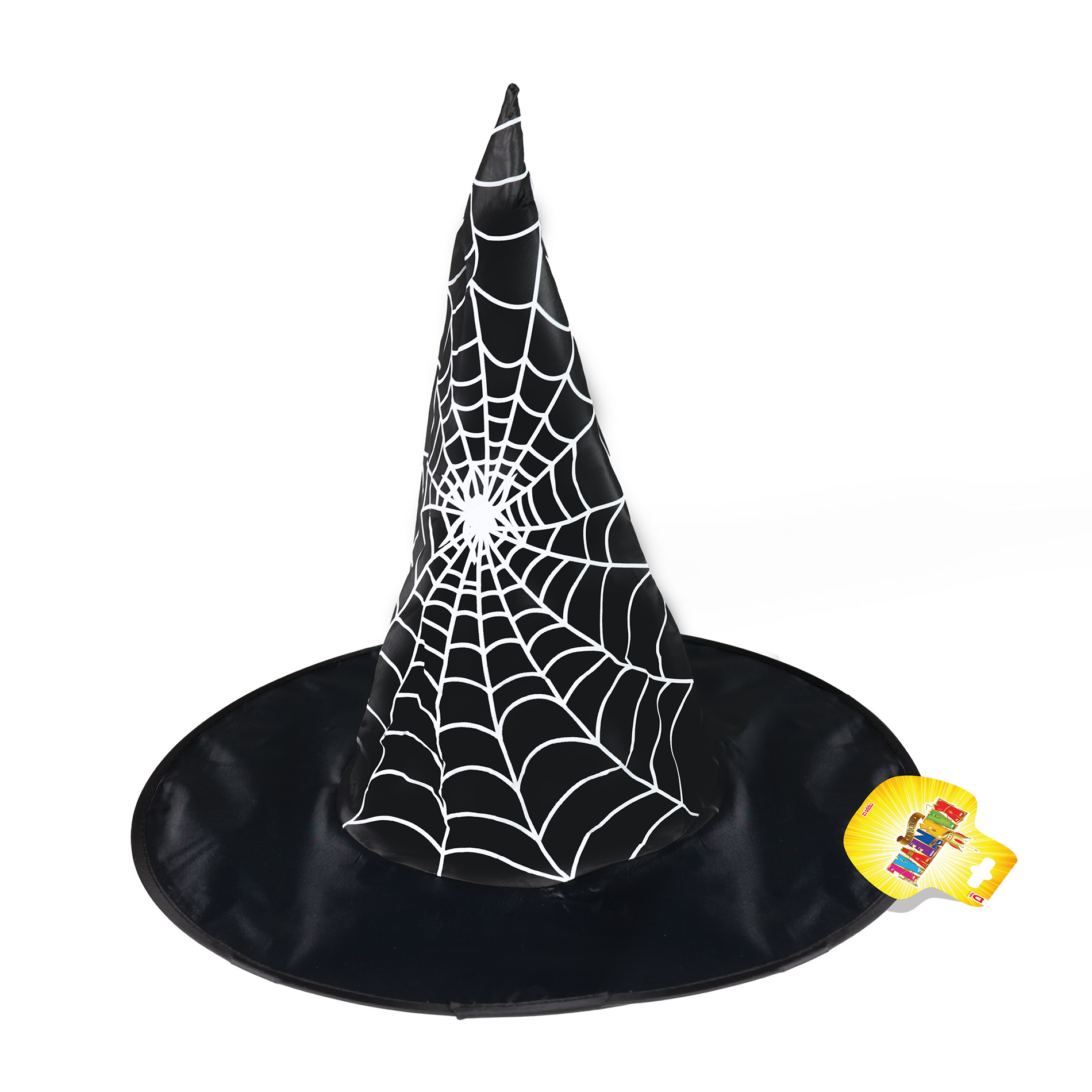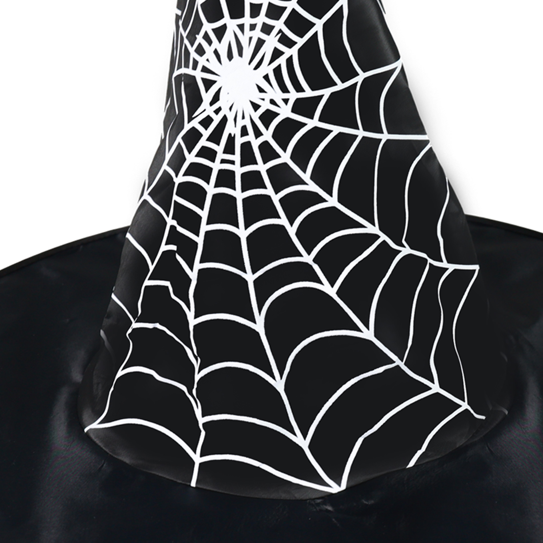 Senzační klobouk pro malé čaroděje a čarodějnice! Tento černý elegán je zdoben bílou pavučinou s pavoukem. Ideální doplněk na Halloweenskou párty. Staň se hvězdou karnevalového večírku díky tomuto nepřehlédnutelnému klobouku!
