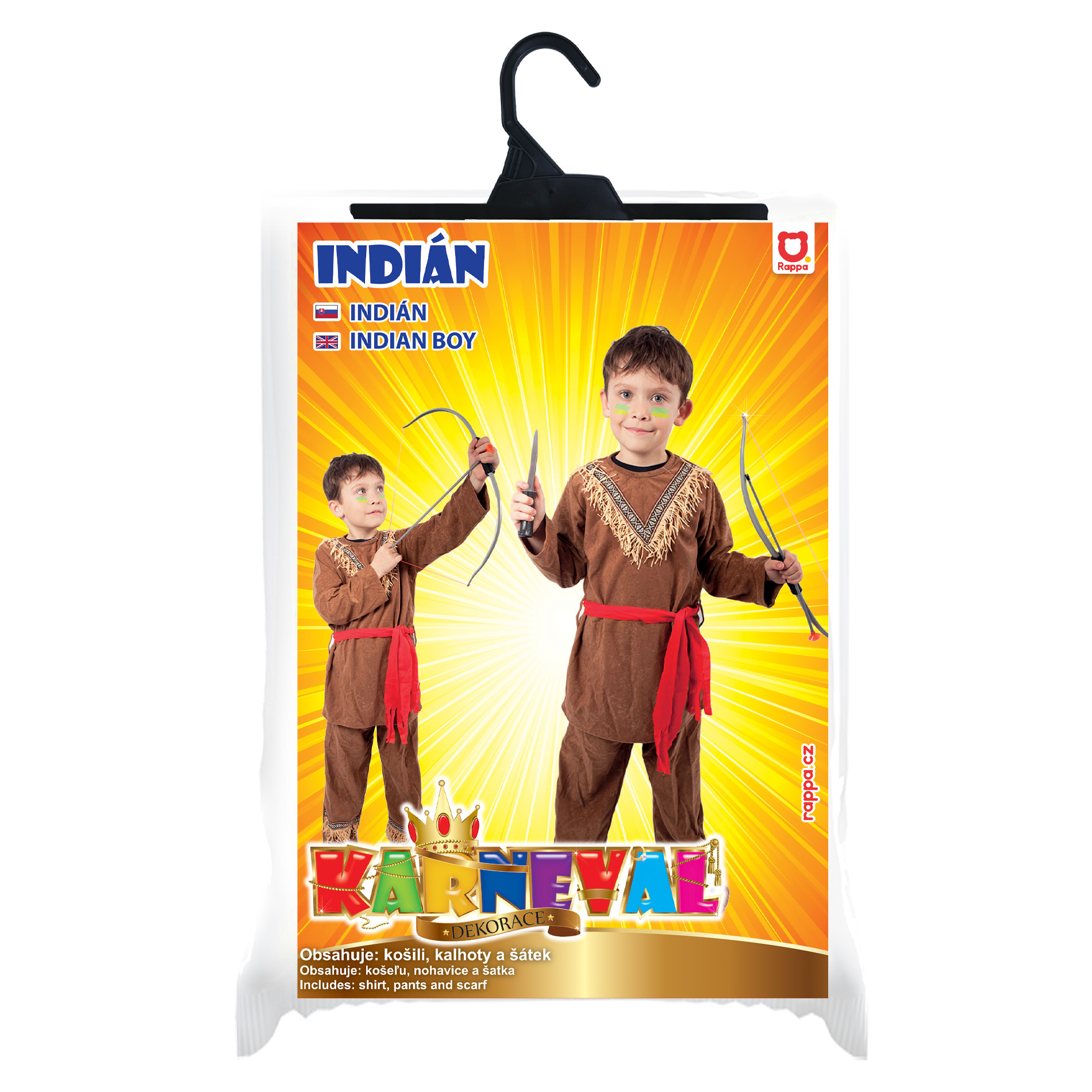 Stylový karnevalový kostým s motivem indiána! Kostým hnědé barvy ve velikosti S je určen pro chlapečky ve věkovém rozmezí 4-6 let. Balení obsahuje horní díl s indiánským vzorem, kalhoty a červený šátek. Neobsahuje zbraň - luk. Oba díly jsou zdobeny střapci. Staň se největším frajerem karnevalového večírku díky tomuto kostýmu a ohrom tak všechny své kamarády!Více