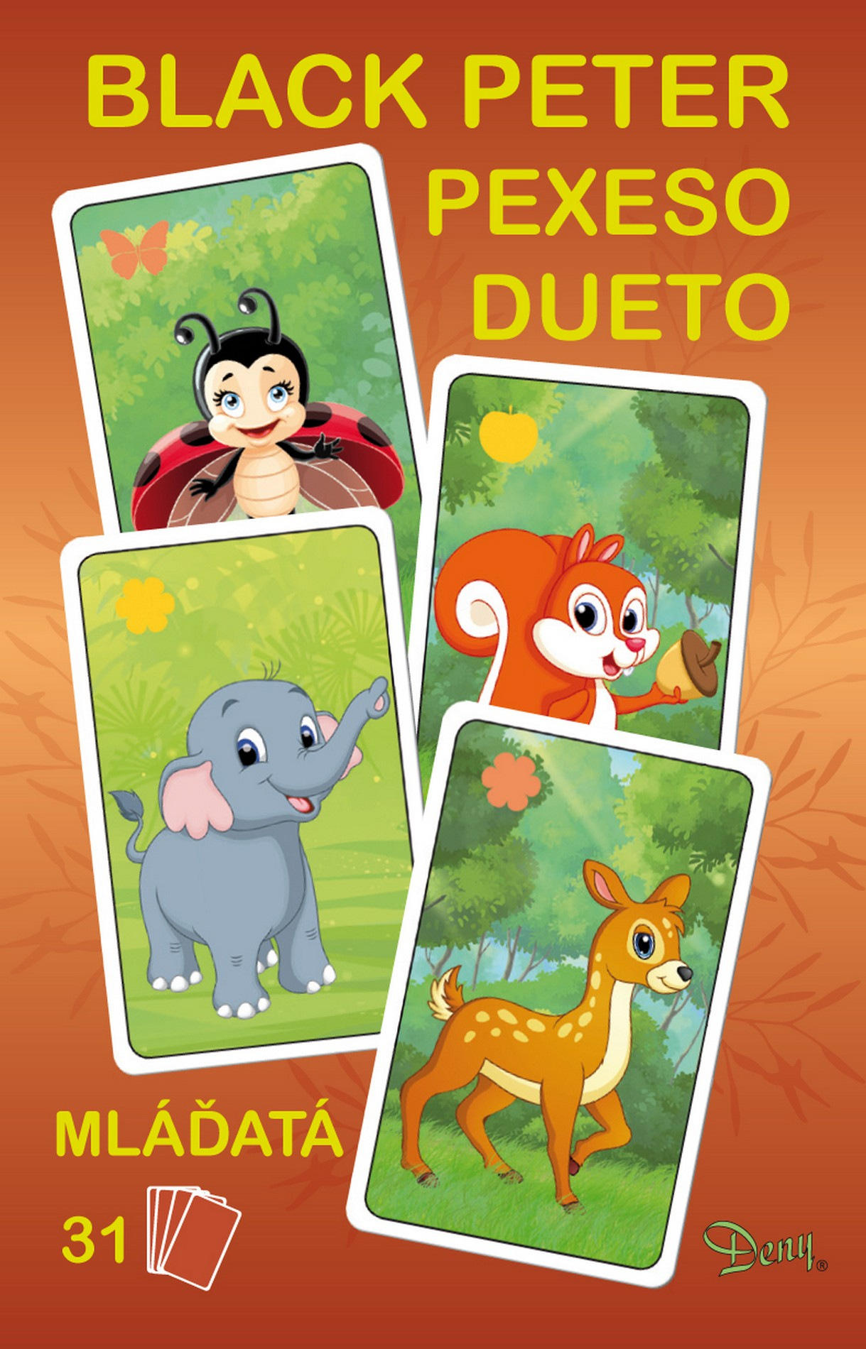 Černý Petr klasická karetní hra s obrázky. Hra se skládá z 31 karet, které jsou rozděleny do 15 dvojic, z nichž je každá dvojice označena stejným obrázkem. Pouze jediná karta se od ostatních liší a to je Černý Petr . Vyhrává ten, kdo bude mít dvojice vyloženy nejdříve. Prohrává ten, komu zůstane v ruce Černý Petr. Hry se můžou zúčastnit nejméně 3 hráči. Součástí balení je 31 karet a 1 návod. Tento karetní set si oblíbí všechny děti milující mláďátka.