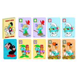 Dětské karty pro hru zvanou Černý Petr s obrázky Šmoulové. Krabička obsahuje i podrobný návod a karty mají na rubové straně mírně zdrsnělý povrch pro lepší manipulaci s nimi.
