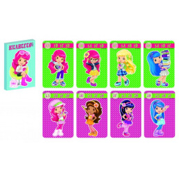 Dětské karty pro hru zvanou Kvarteto s obrázky Strawberry. Krabička obsahuje i podrobný návod a karty mají na rubové straně mírně zdrsnělý povrch pro lepší manipulaci s nimi.