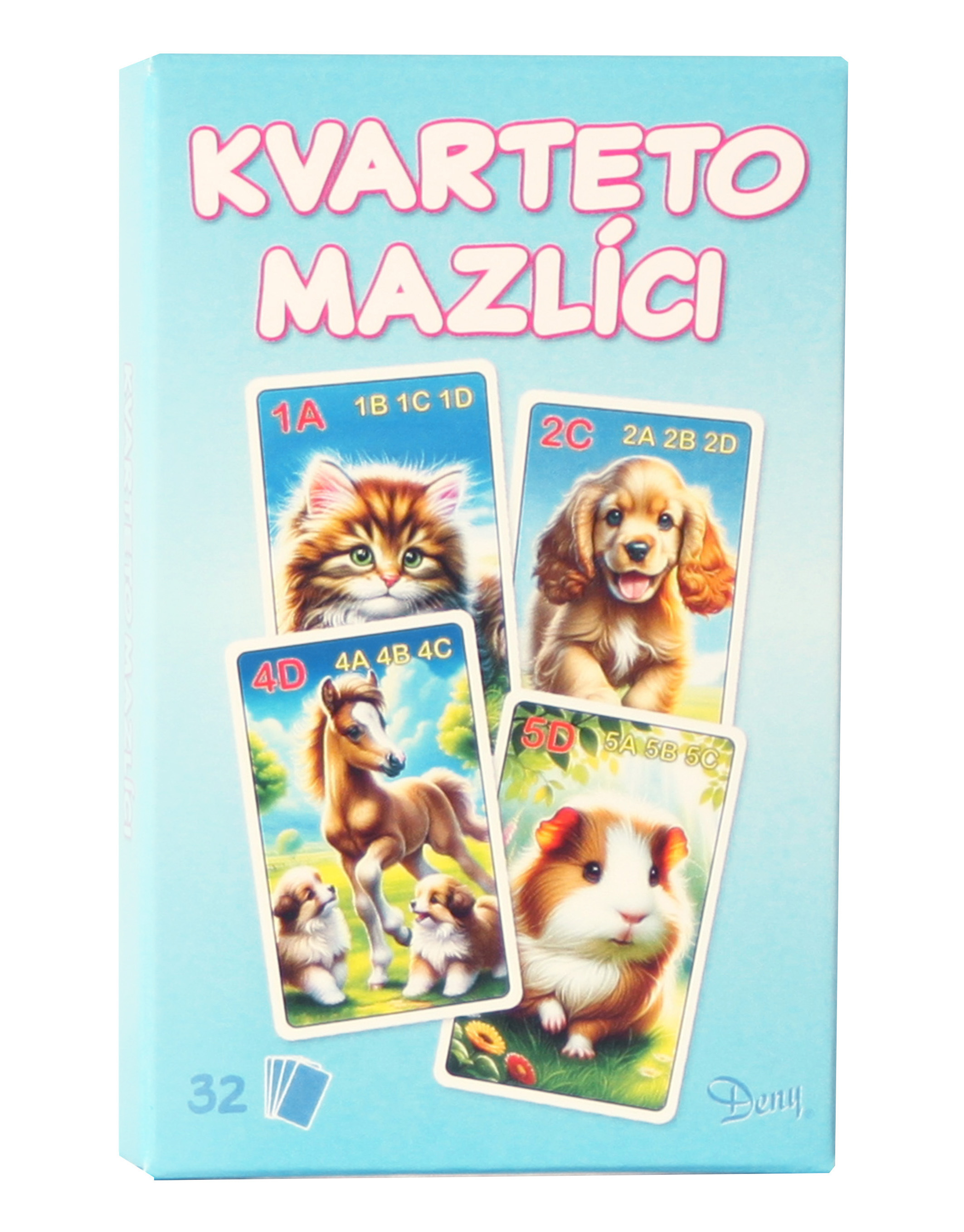Klasická karetní hra kvarteto s motivem zvířecích mazlíčků. Kvarteto je hra, kde hráči tahají karty jeden od druhého a skládají z nich čtveřice. Vítězem se stává hráč, který nemá v ruce žádné karty a na stole má nejvíce „kvartet“. S touto oblíbenou karetní hrou se zaručeně nebudeš nudit!