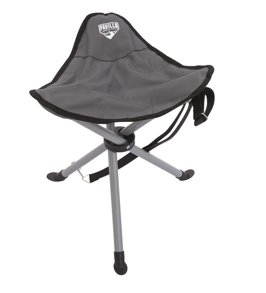 Lehká, skladná a praktická trojnožka nejen na kempování se velmi snadno přenáší. Max. nosnost: 105 kg. Váha: 0,8 kg. Obsahuje: 1x židlička, přepravní popruh. Rozměr židličky: 31x31x38 cm.