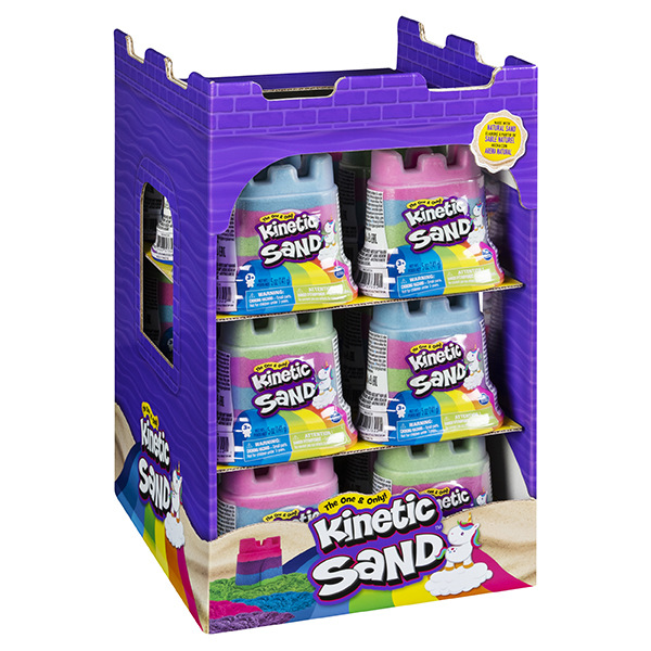 Tato varianta Kinetického písku nabízí 4 duhové barvy v jednom kelímku - modrá, zelená, fialová a růžová. Smíchej je dohromady, rozmělňuj, krájej, formuj do různých tvarů. Obal je zároveň formička pro pvorbu hradeb. Neobsahuje pšenici, lepek ani kasein.